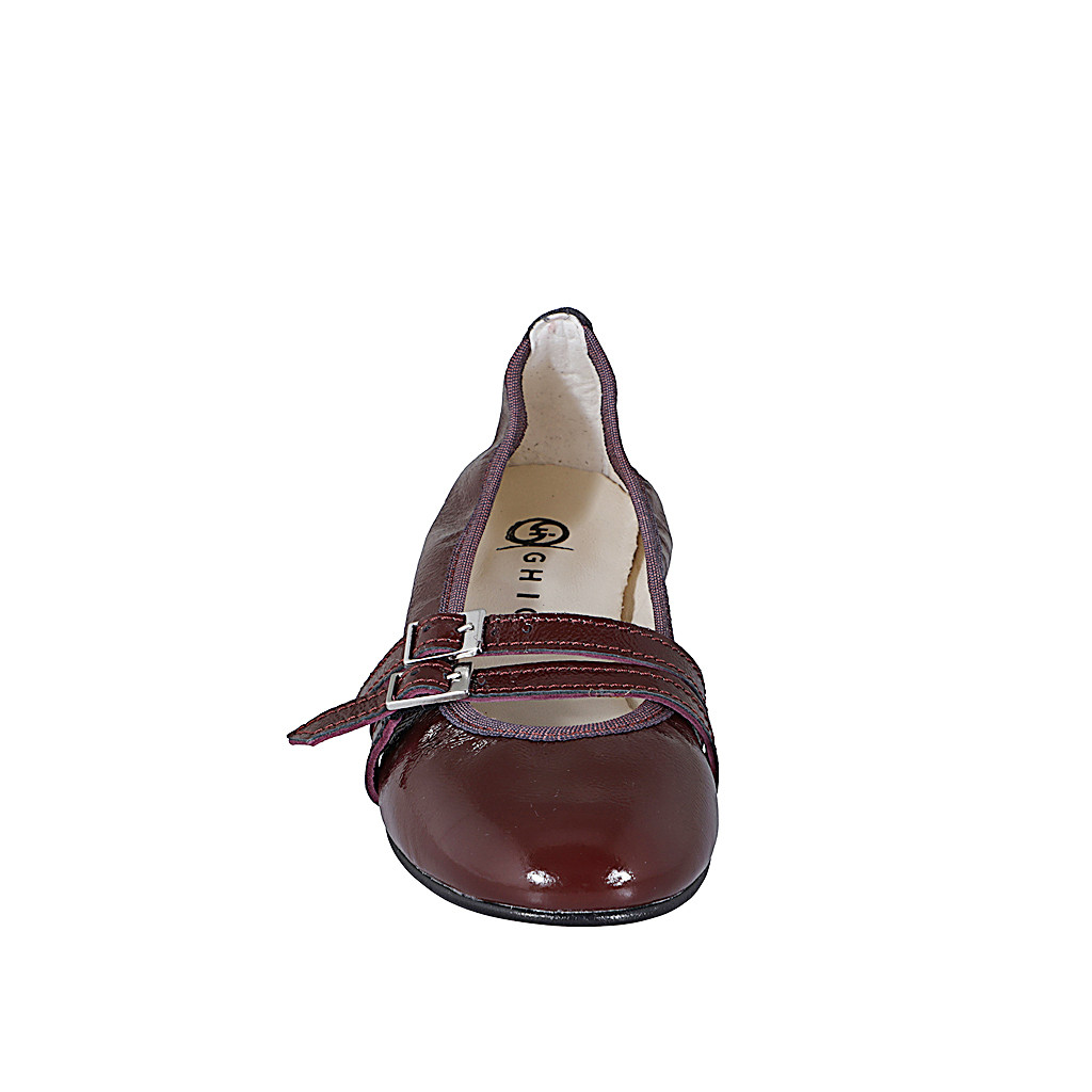 Ballerina Mary Jane a punta da donna con cinturini in vernice bordeaux tacco 2