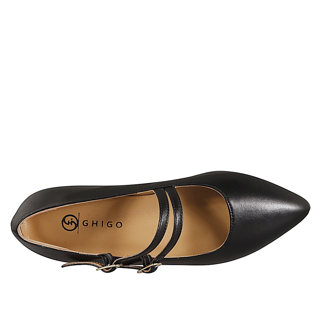 Mary Jane da donna con punta sfilata e due cinturini in pelle nera tacco 2