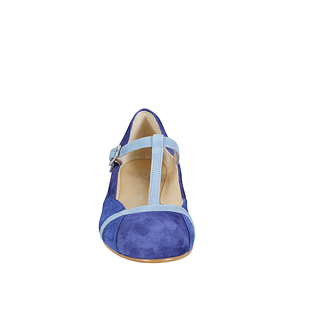 Ballerina con cinturino stile Charleston da donna in pelle blu, bianca e rossa tacco 1