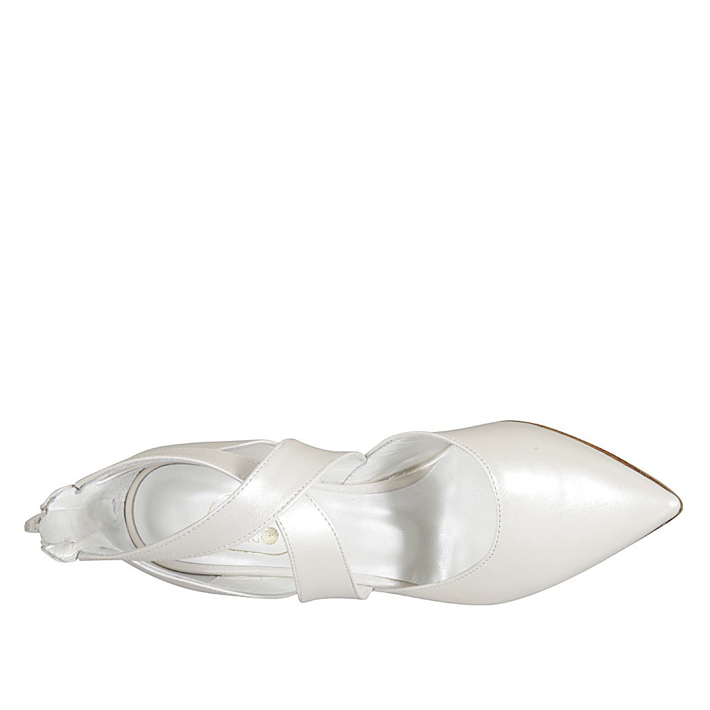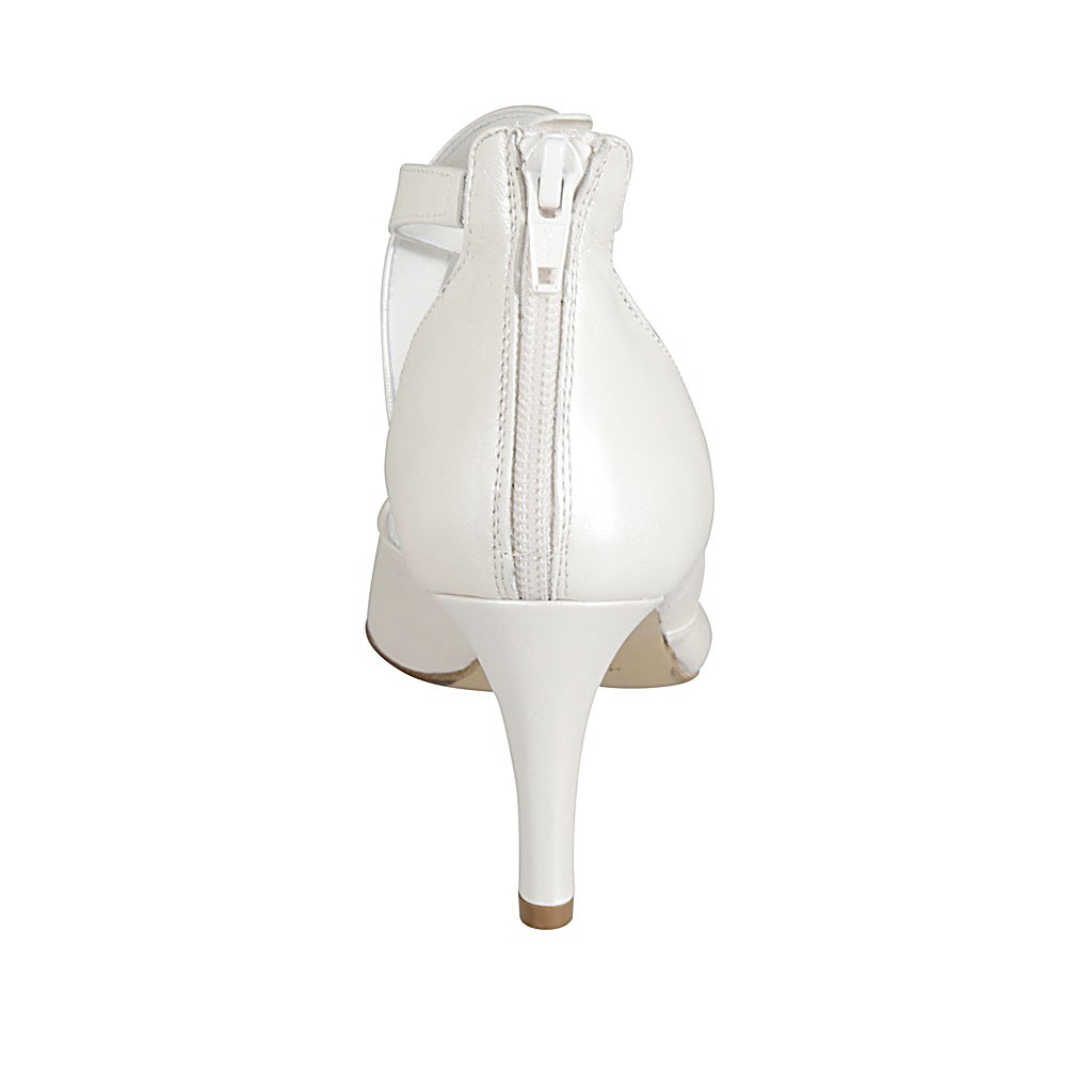 Décolleté da donna in pelle perlata avorio con cerniera posteriore e fasce incrociate tacco 7