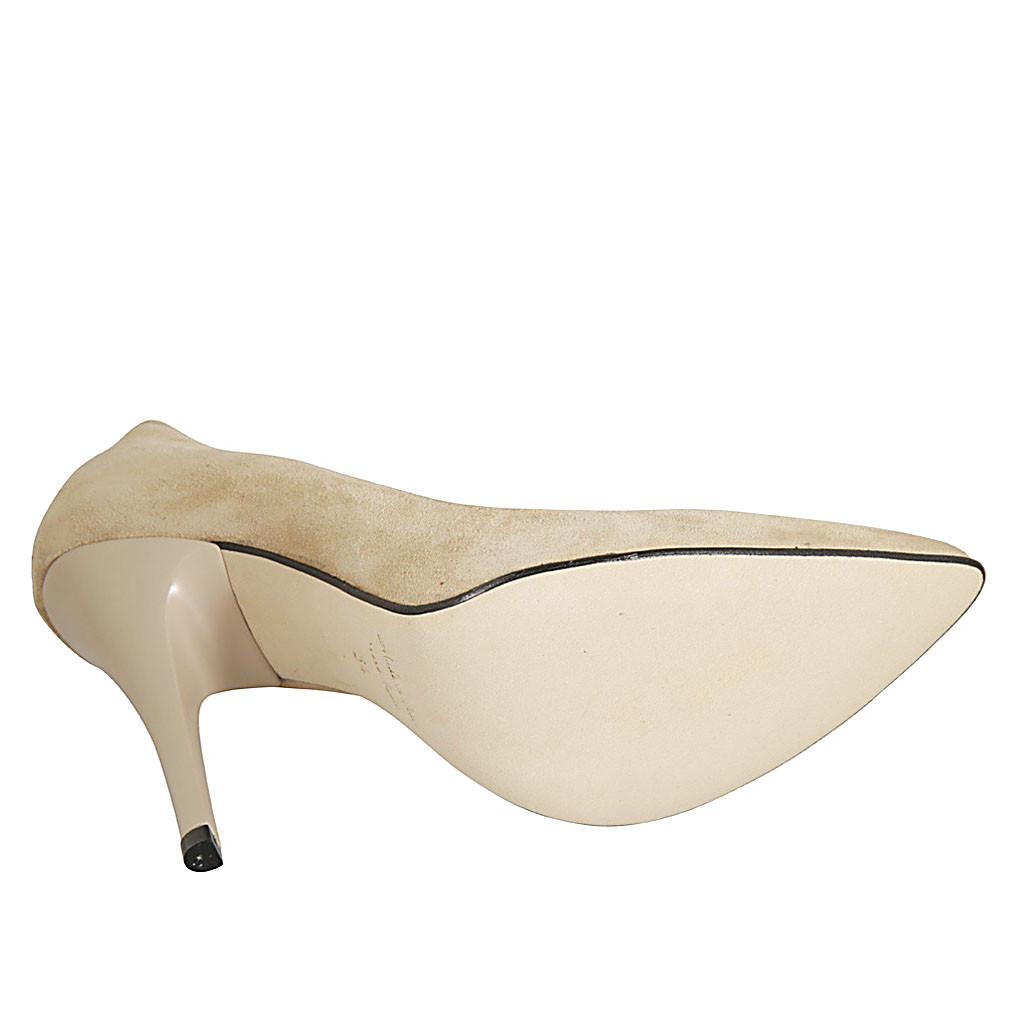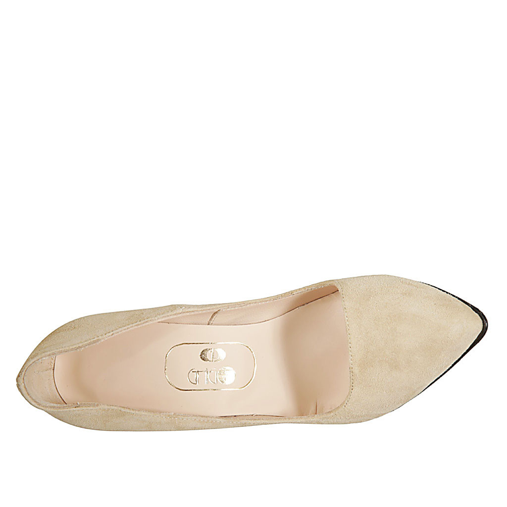 Décolleté a punta da donna in camoscio beige sabbia tacco 11