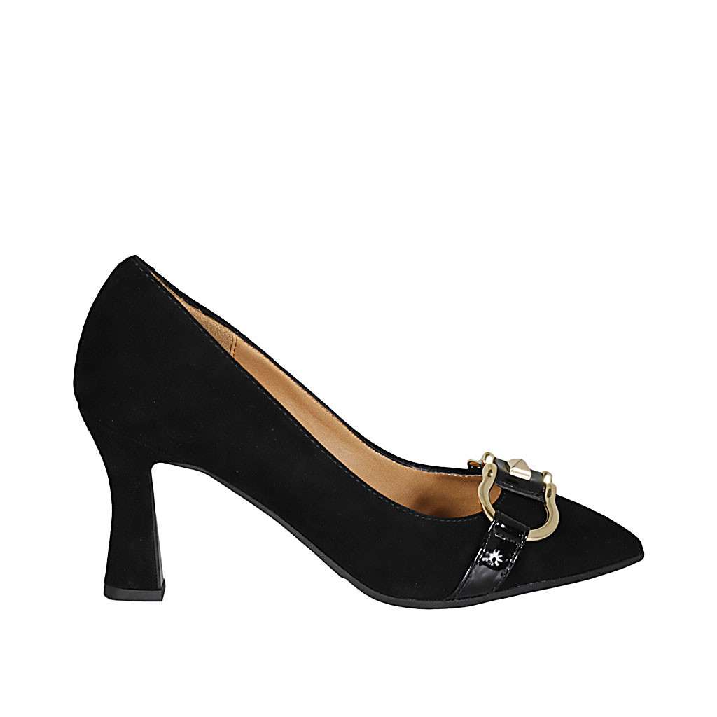 Décolleté da donna con accessorio in camoscio e vernice nera tacco 8