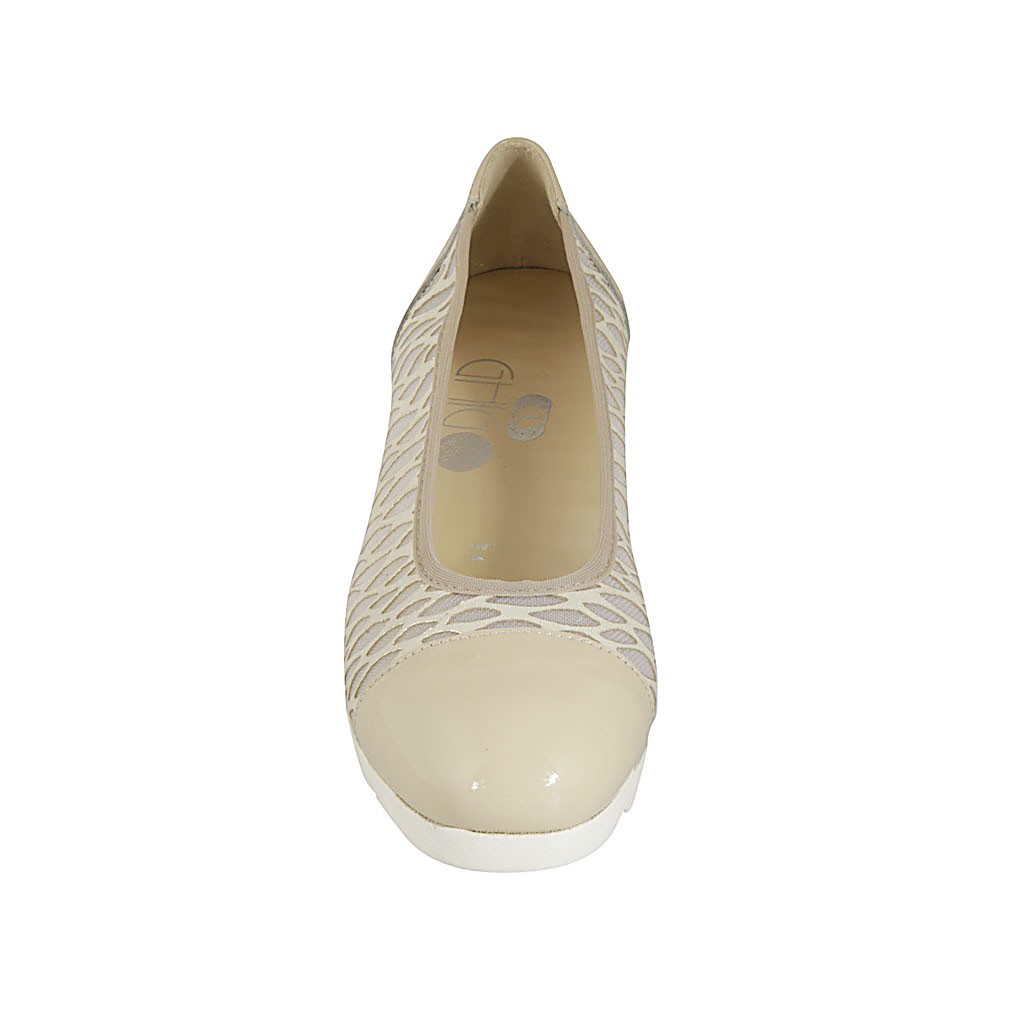 Décolleté da donna in tessuto trasparente e vernice beige con plantare estraibile zeppa 5 - Misure disponibili: 42