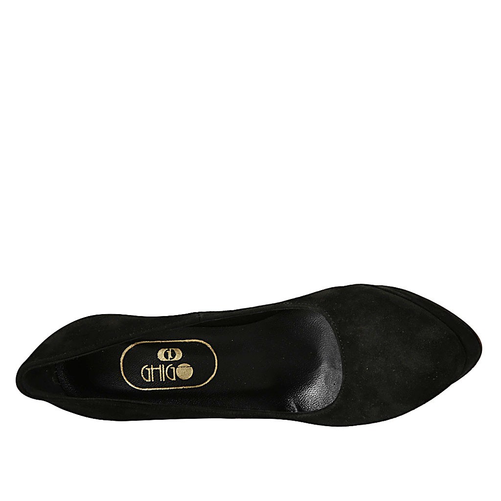 Décolleté a punta da donna in camoscio nero con plateau e tacco 10