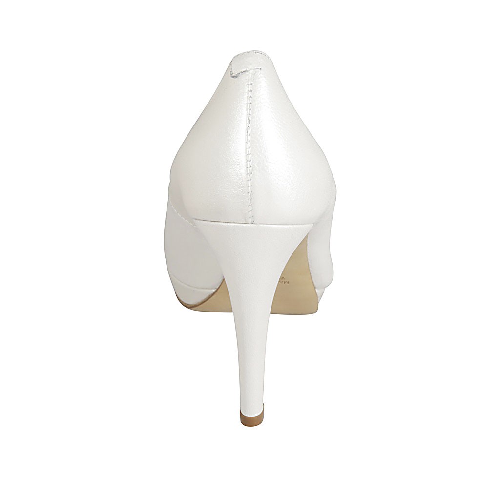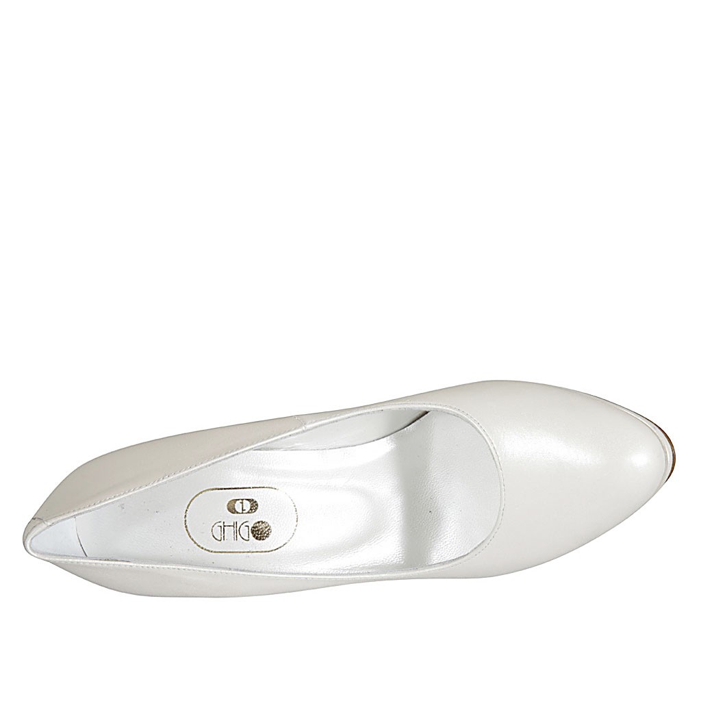 Décolleté con plateau da donna in pelle avorio perlata tacco 9