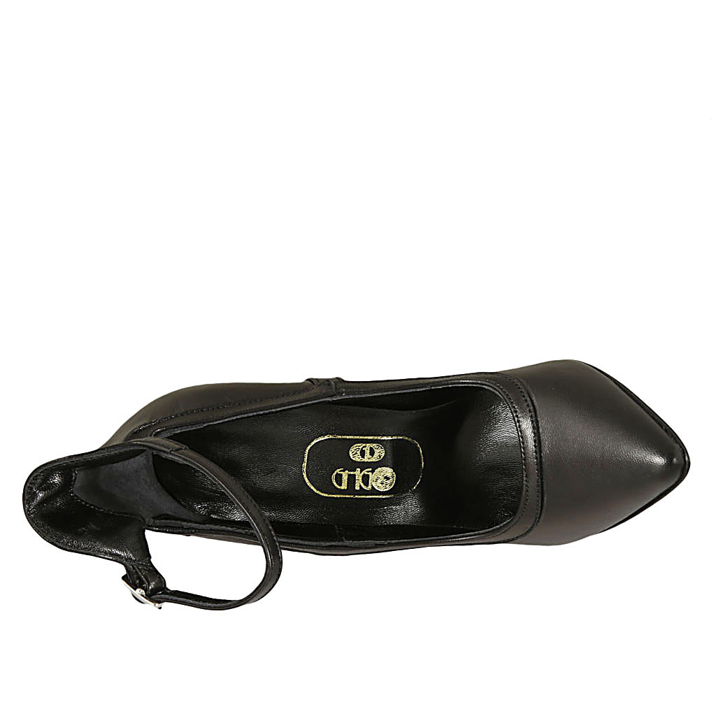 Décolleté da donna con cinturino in pelle nera tacco 11 - Misure disponibili: 31
