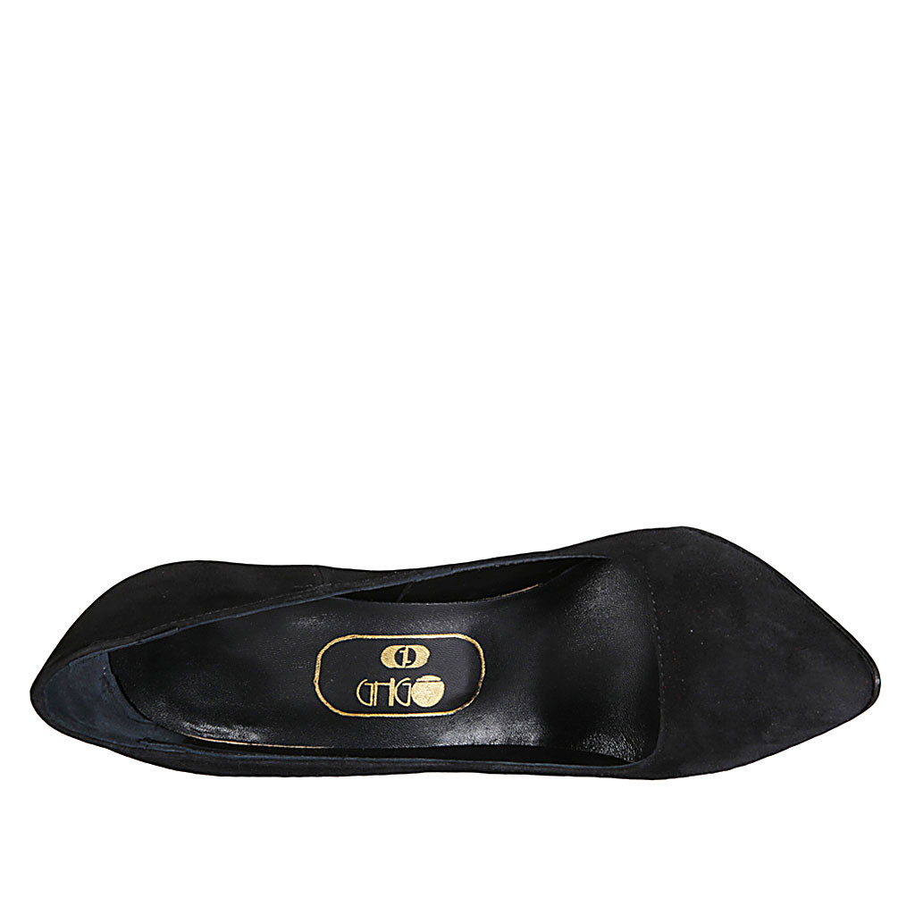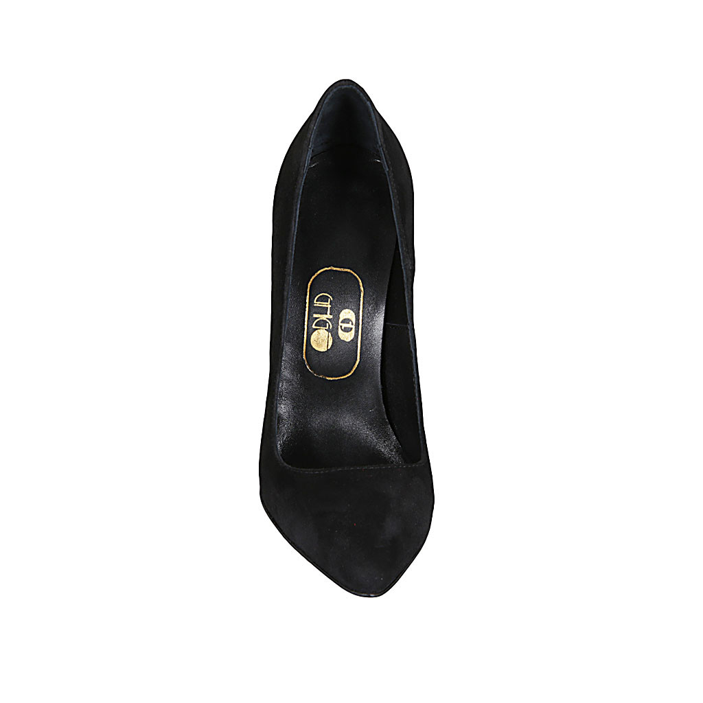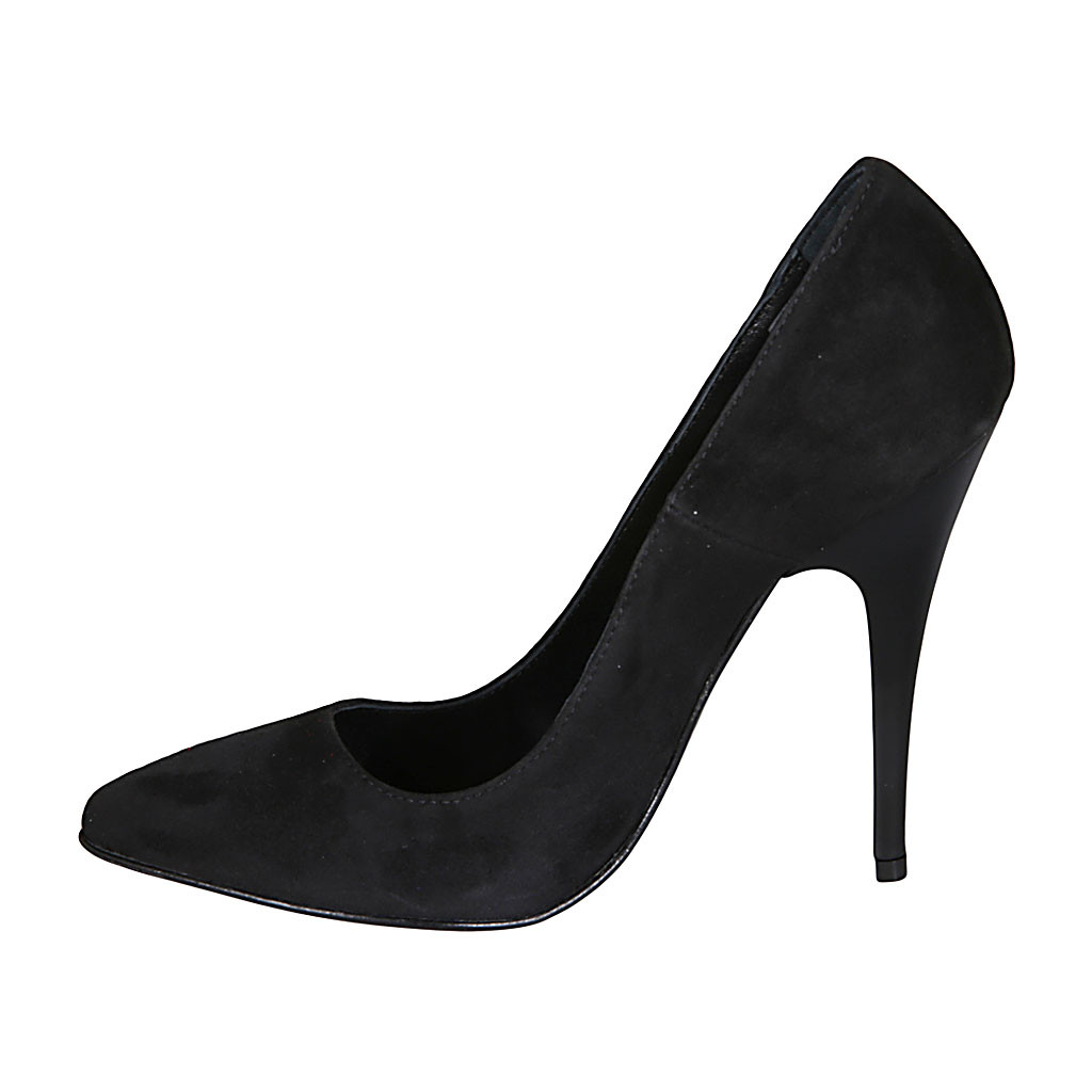 Décolleté a punta da donna in camoscio color nero tacco 11