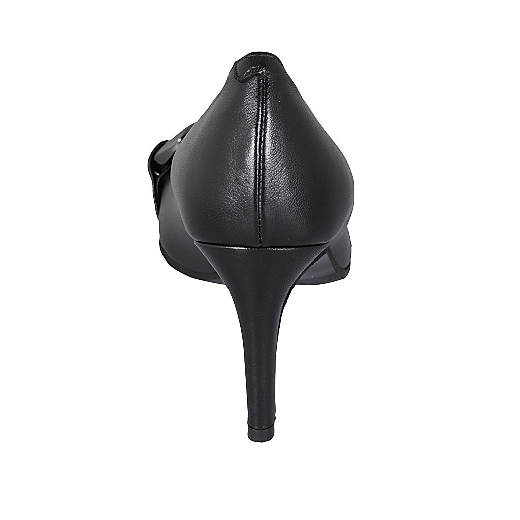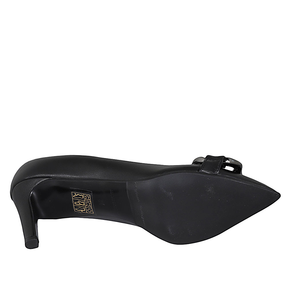 Décolleté con catena da donna in pelle nera tacco 8