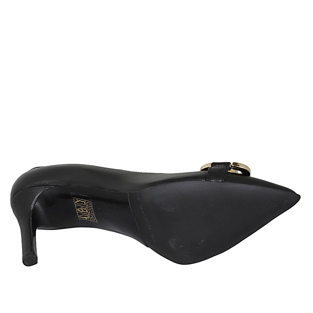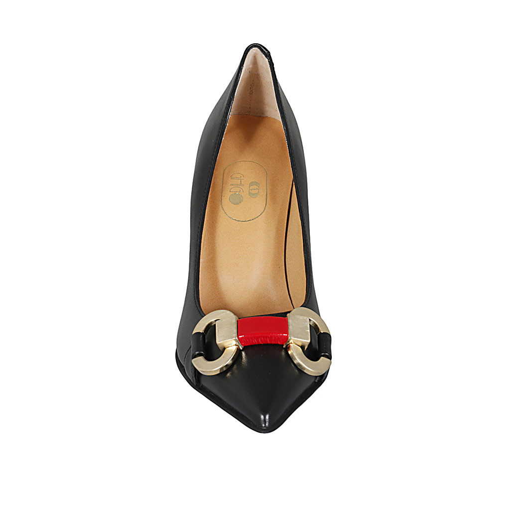Décolleté da donna in pelle nera con accessorio tacco 8