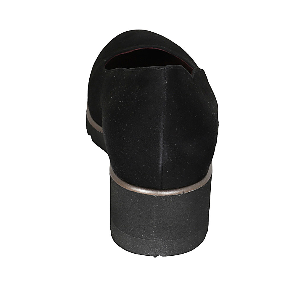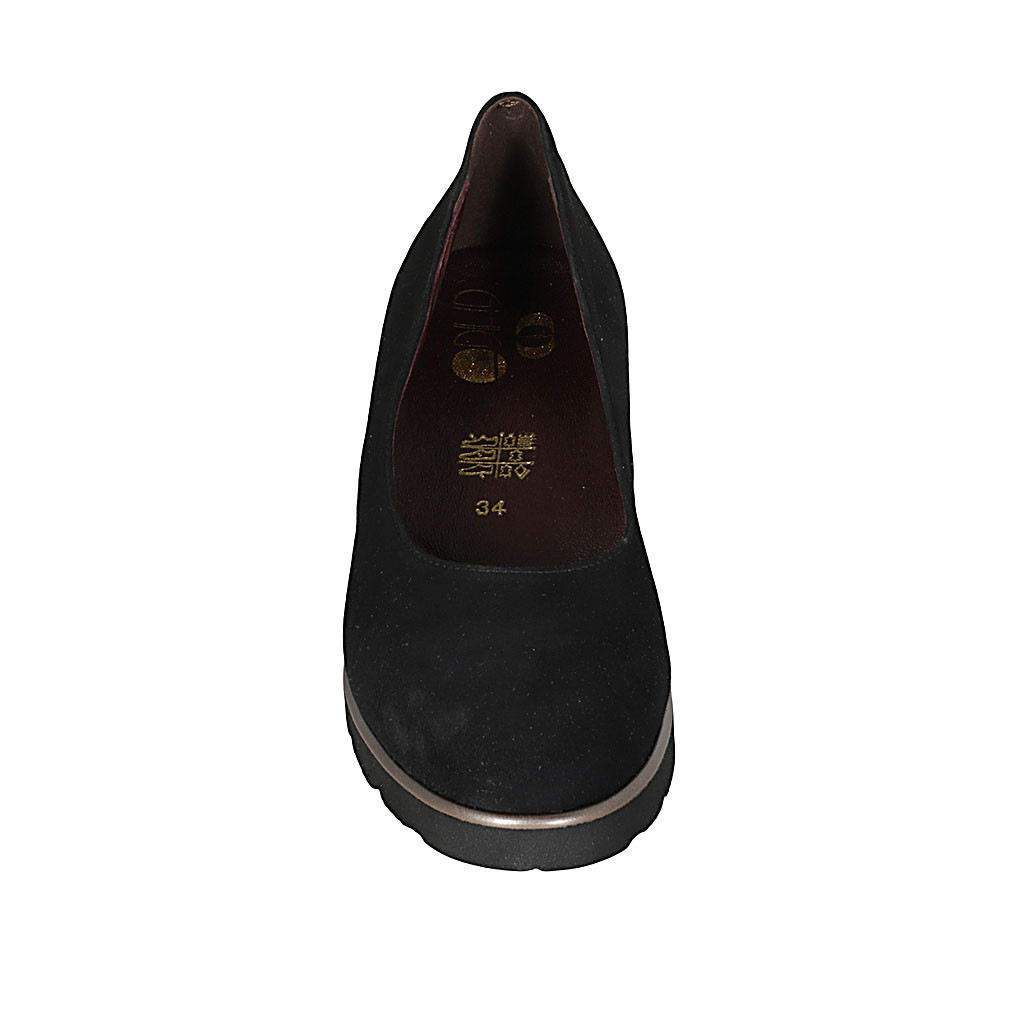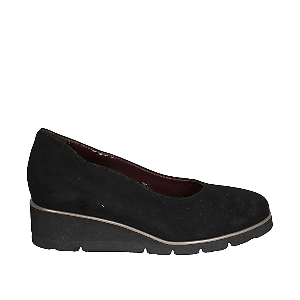 Décolleté da donna con plantare estraibile in camoscio nero zeppa 4