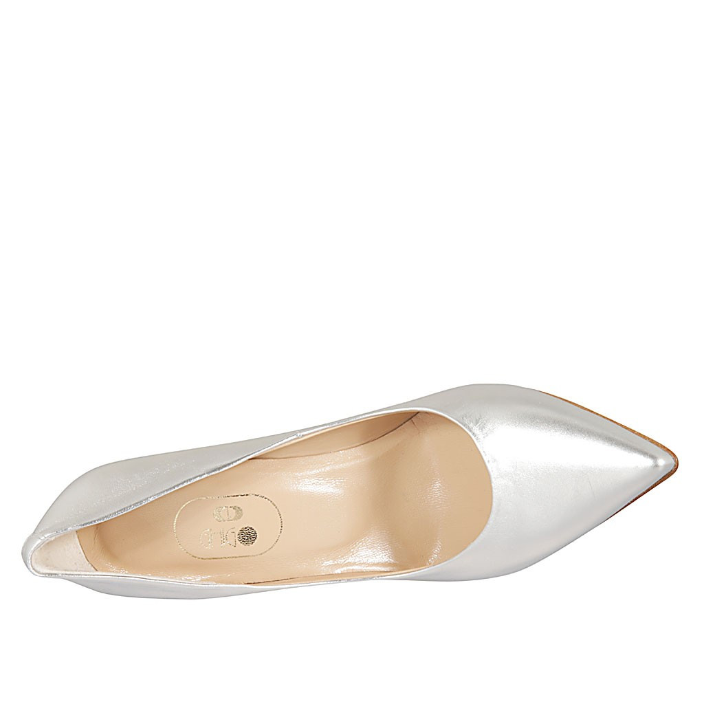Décolleté elegante a punta da donna in pelle laminata argento tacco 9 - Misure disponibili: 31