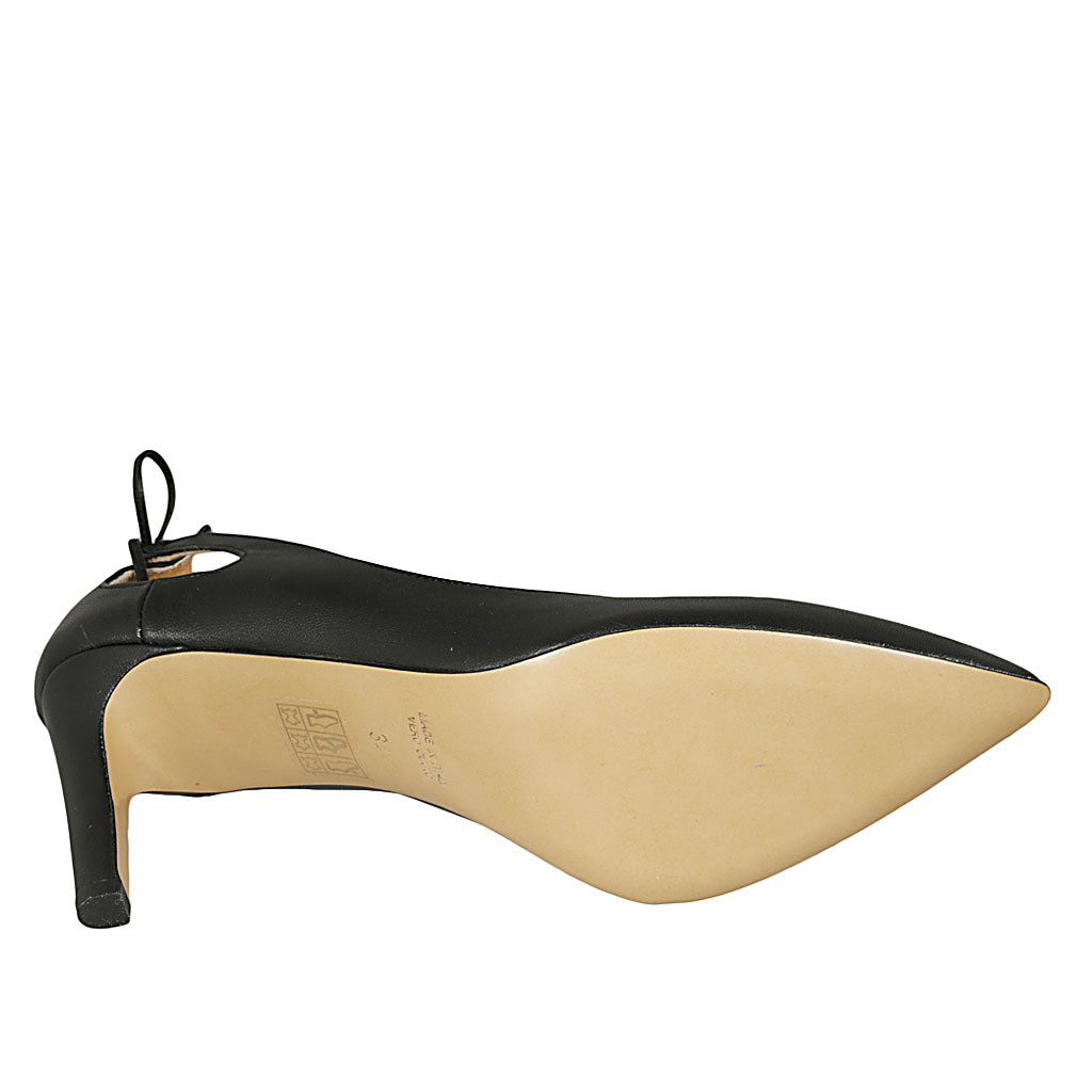 Décolleté a punta da donna con laccio in pelle nera tacco 8