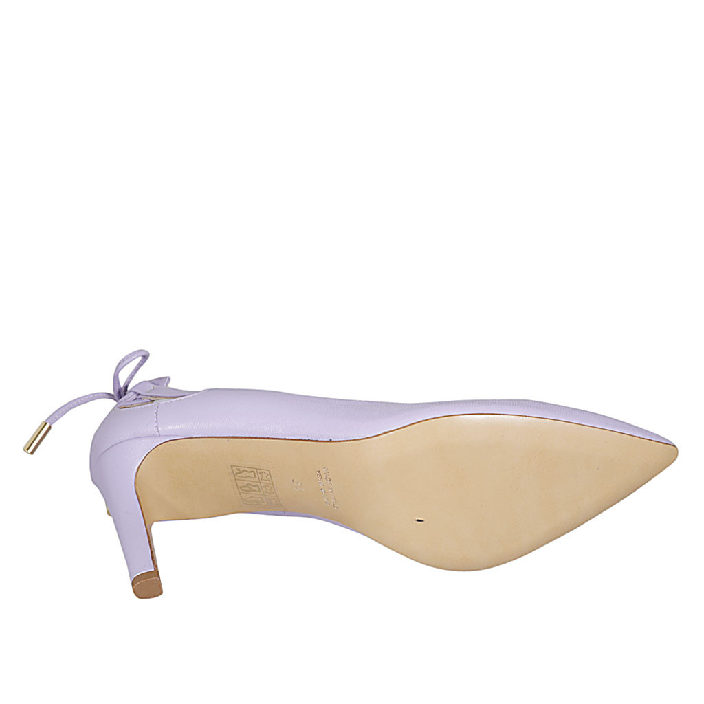 Décolleté a punta da donna in pelle rosa cipria tacco 11