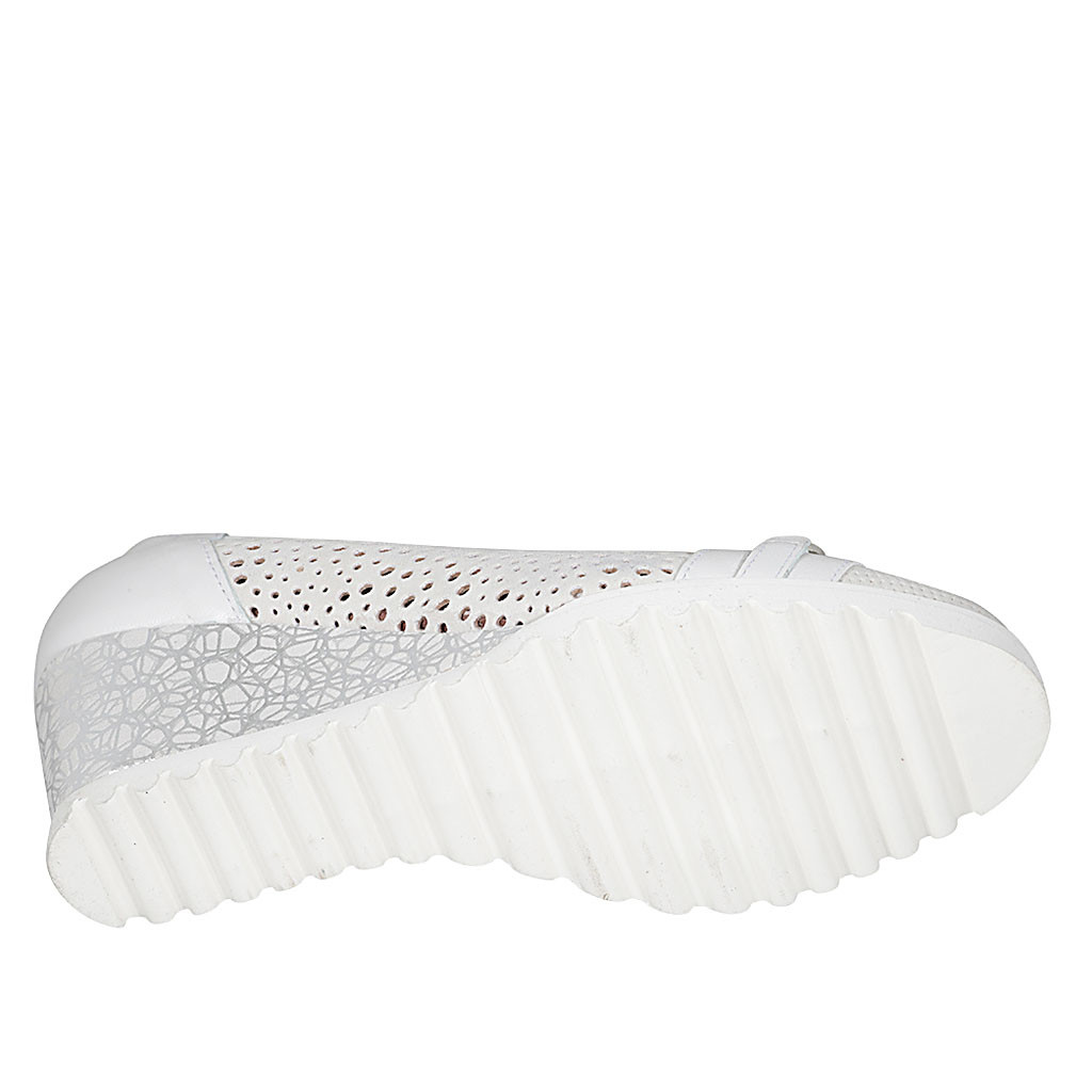 Décolleté da donna in camoscio forato e pelle bianca con accessorio e plantare estraibile zeppa 6