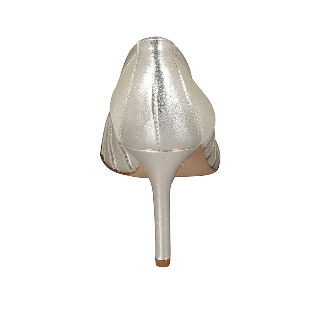 Décolleté a punta da donna in pelle laminata platino e tessuto a rete tacco 8 - Misure disponibili: 31, 42, 43
