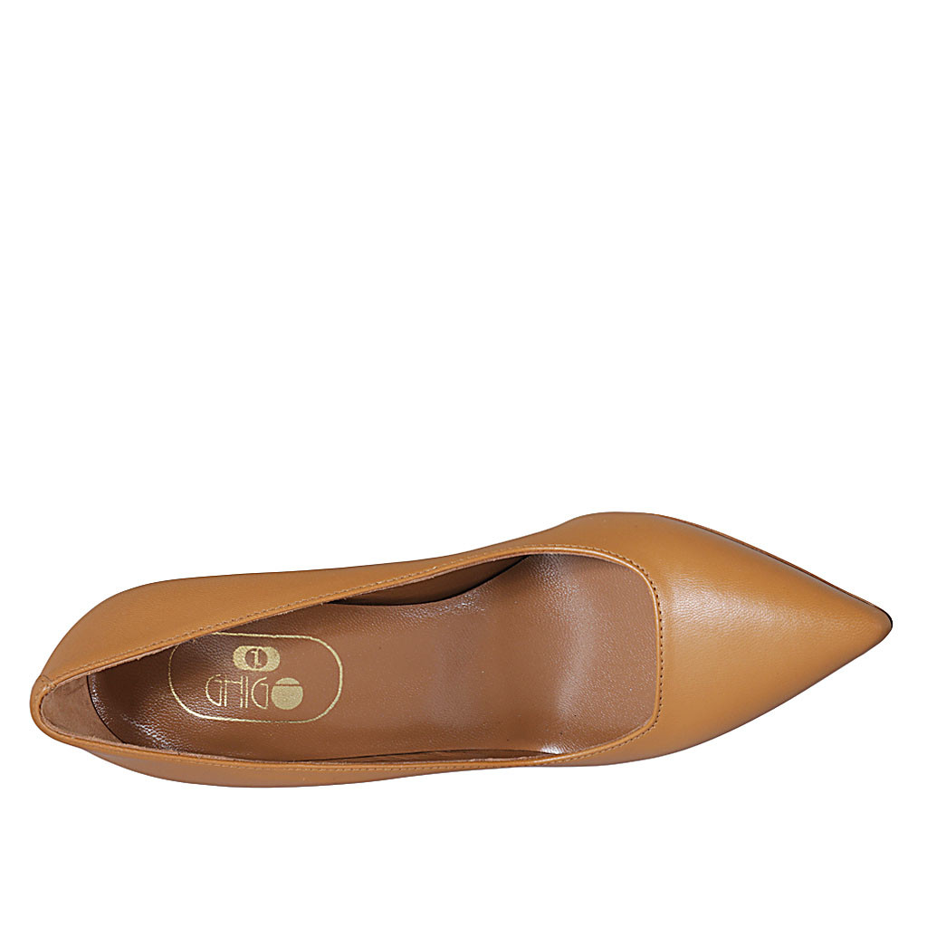 Décolleté a punta da donna in pelle color cuoio tacco 8