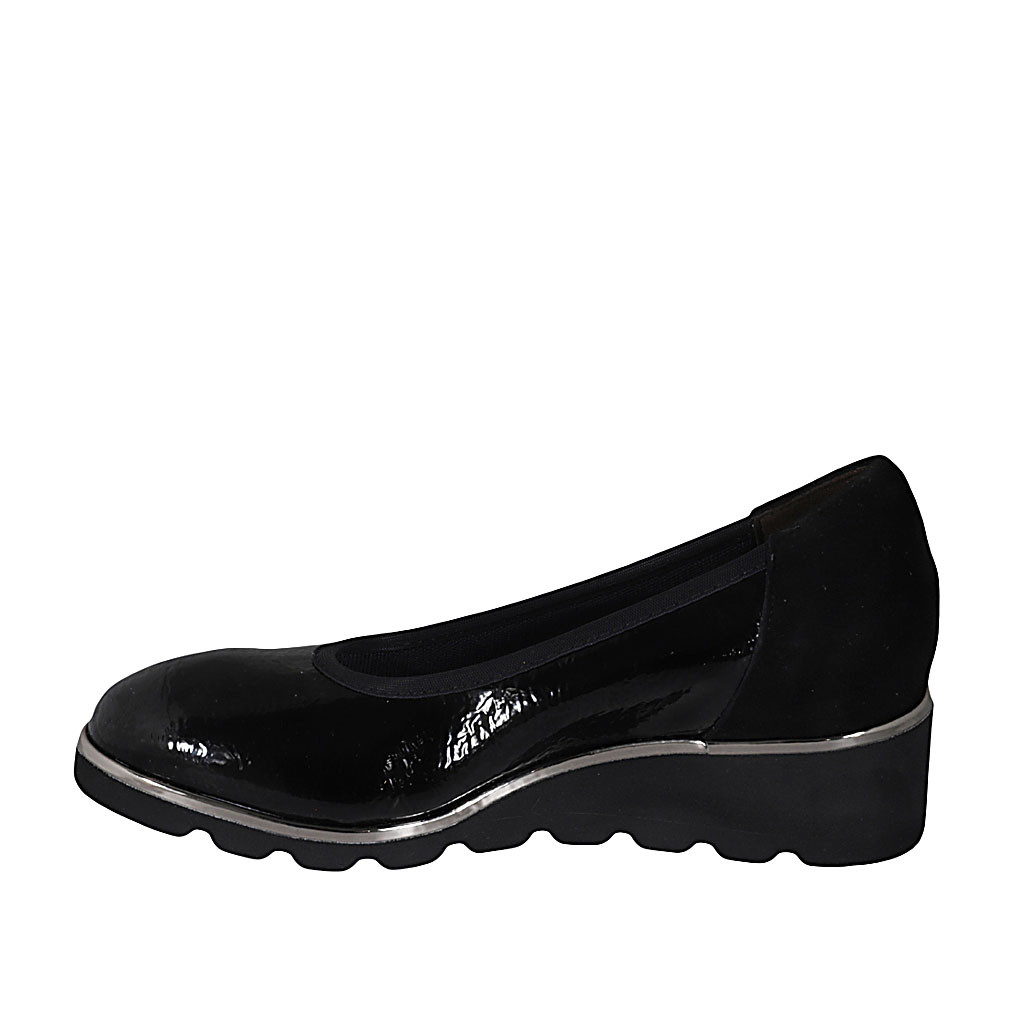 Décolleté da donna con plantare estraibile in vernice e camoscio nero zeppa 4 - Misure disponibili: 31, 42