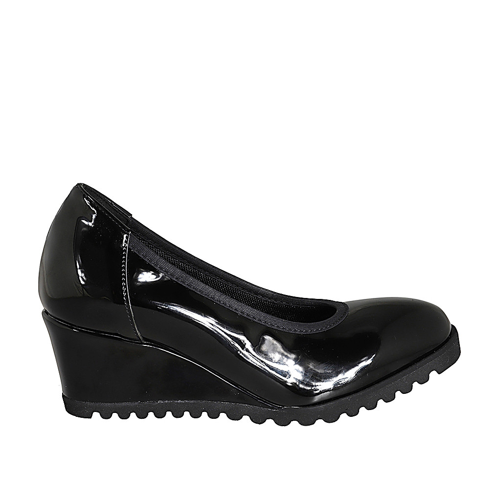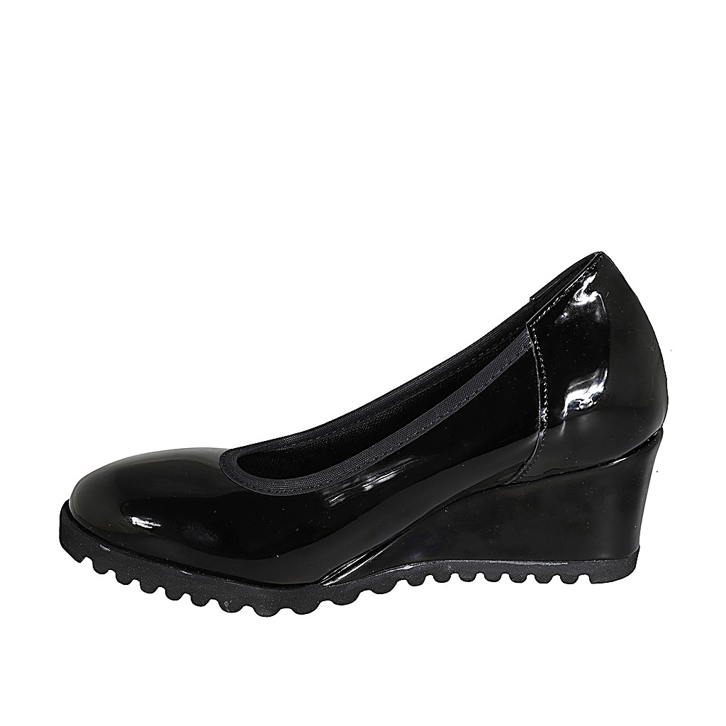 Décolleté da donna con plantare estraibile in vernice nera zeppa 5