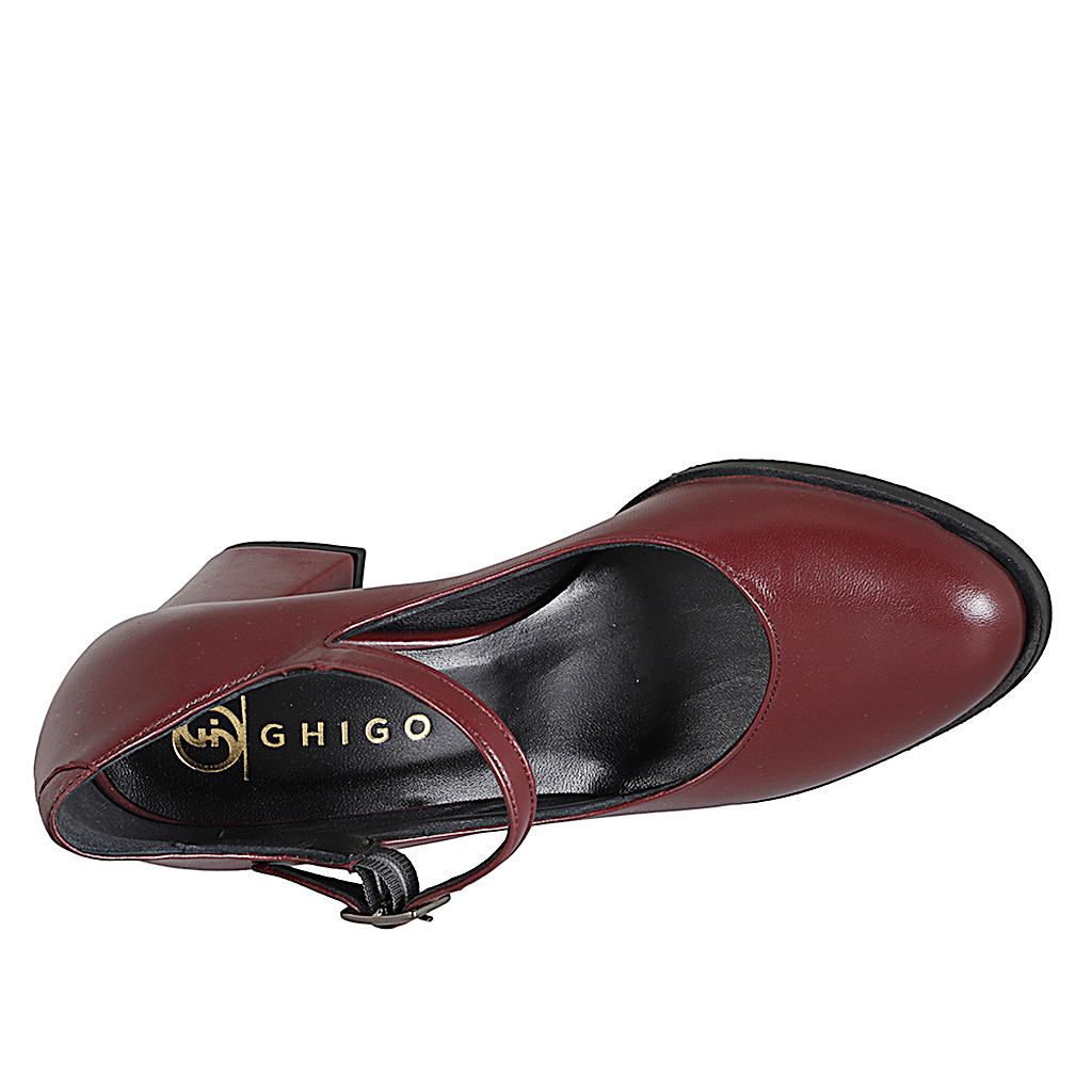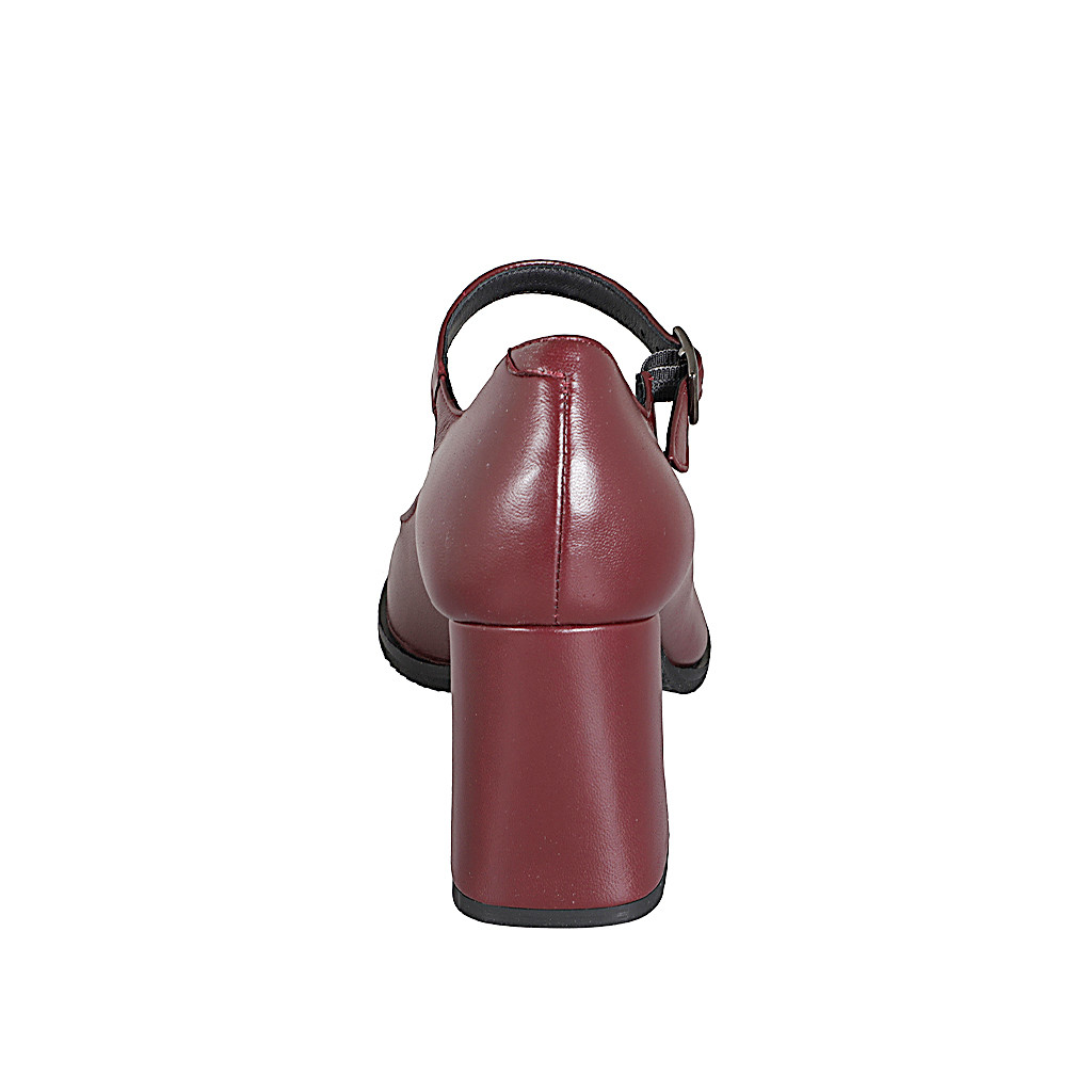 Décolleté Mary Jane a punta tonda in pelle bordeaux tacco 7