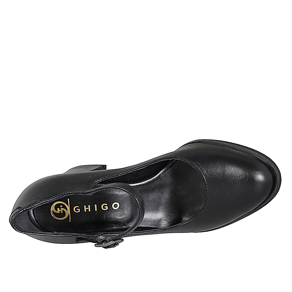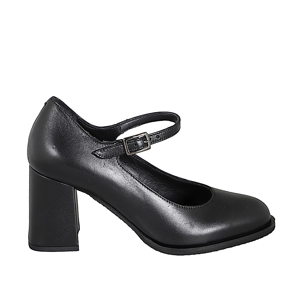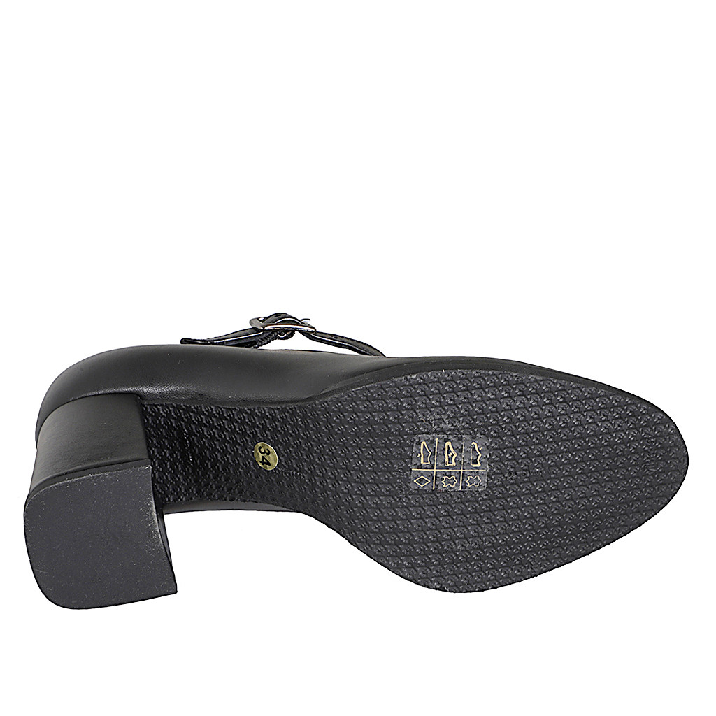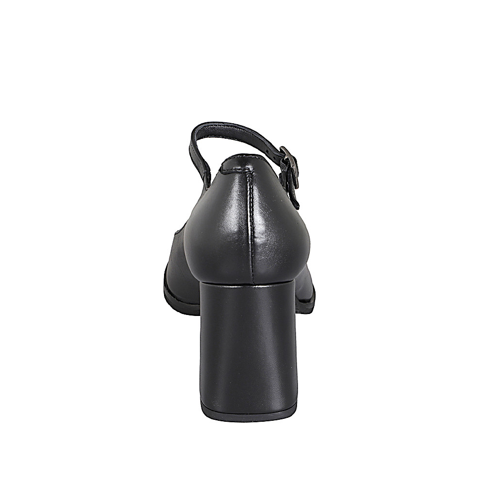 Décolleté Mary Jane a punta tonda in pelle nera tacco 7