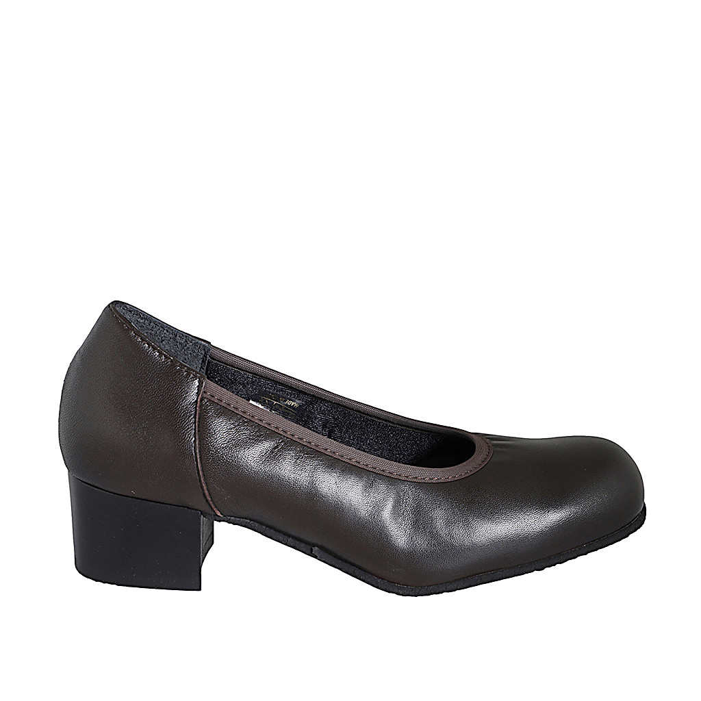 Décolleté da donna con plantare estraibile ed elastico in pelle marrone scuro tacco 4