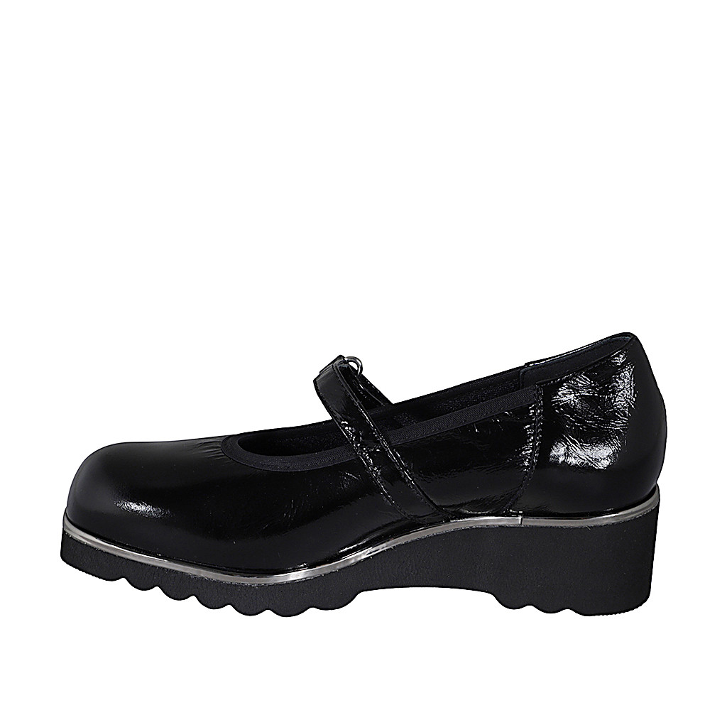 Décolleté Mary Jane da donna con plantare estraibile in vernice nera zeppa4