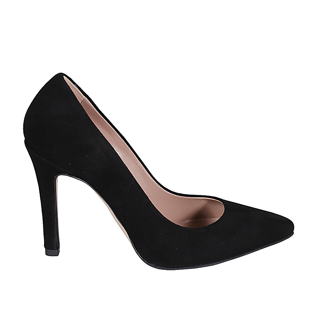 Décolleté a punta da donna in camoscio nero tacco 10 - Misure disponibili: 31, 32, 34, 35, 43, 44, 45