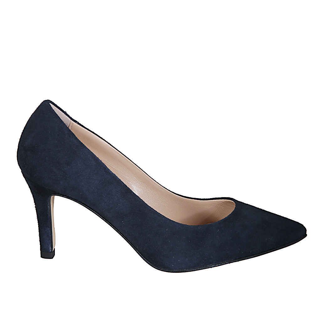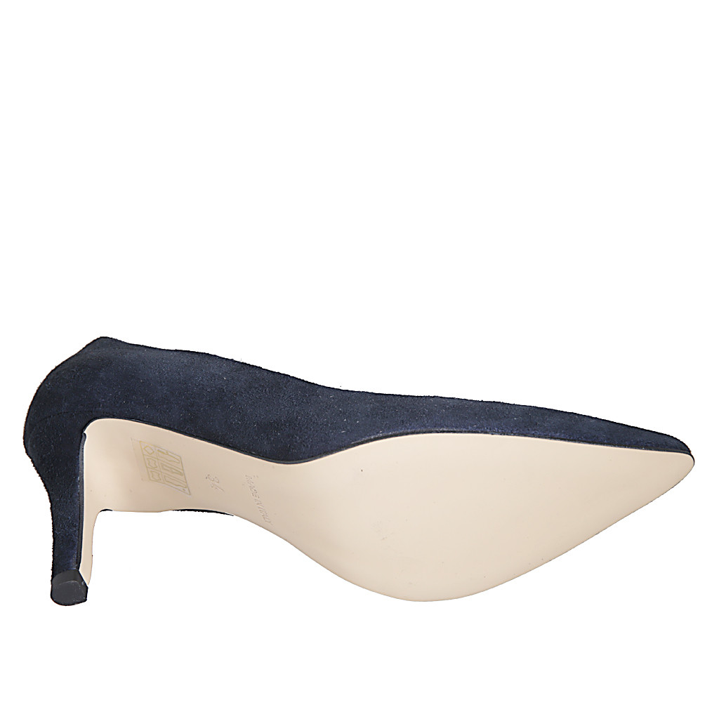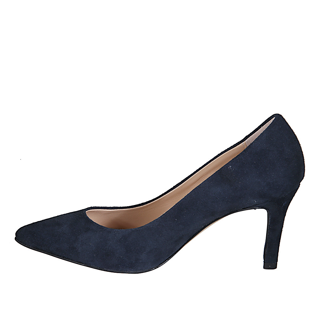 Décolleté a punta da donna in camoscio blu tacco 7