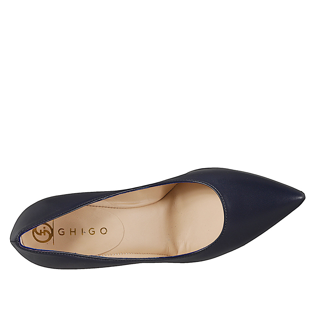 Decolté a punta da donna con plantare in memory foam in pelle blu tacco 7
