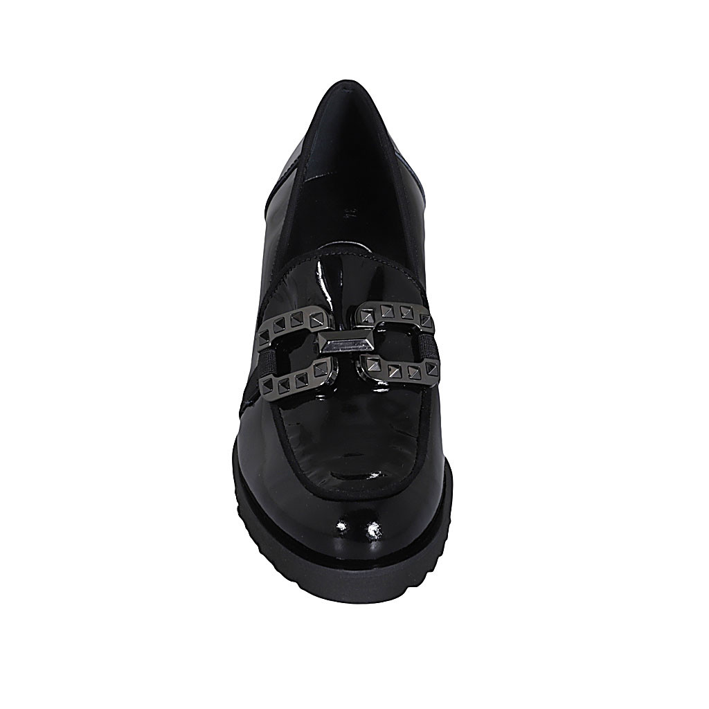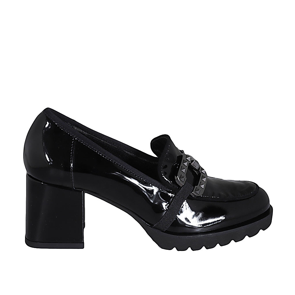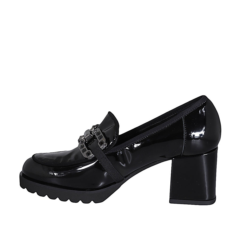 Mocassino da donna in vernice nera con accessorio e tacco 6