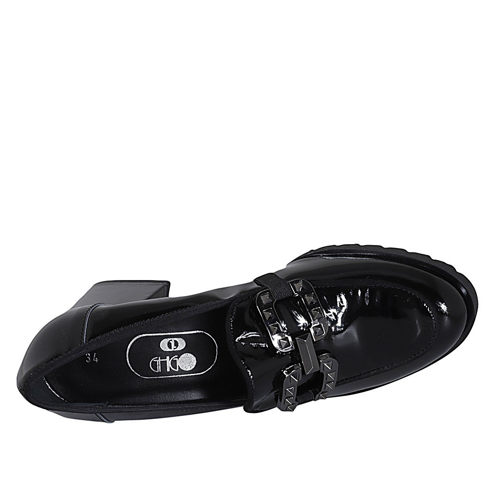 Mocassino da donna in vernice nera con accessorio e tacco 6 - Misure disponibili: 32, 42