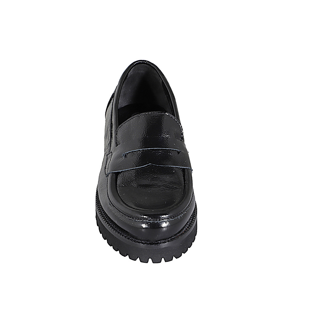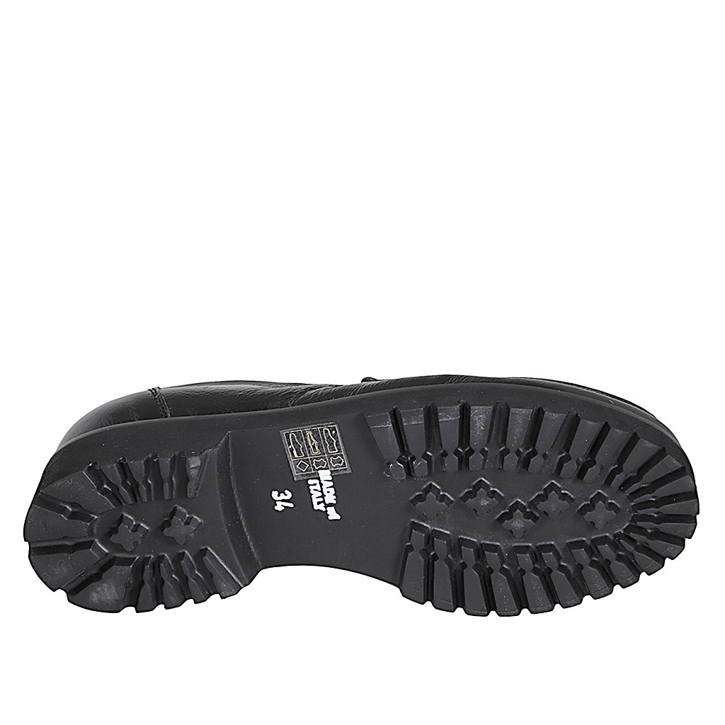 Mocassino da donna in pelle nera con accessorio e tacco 4