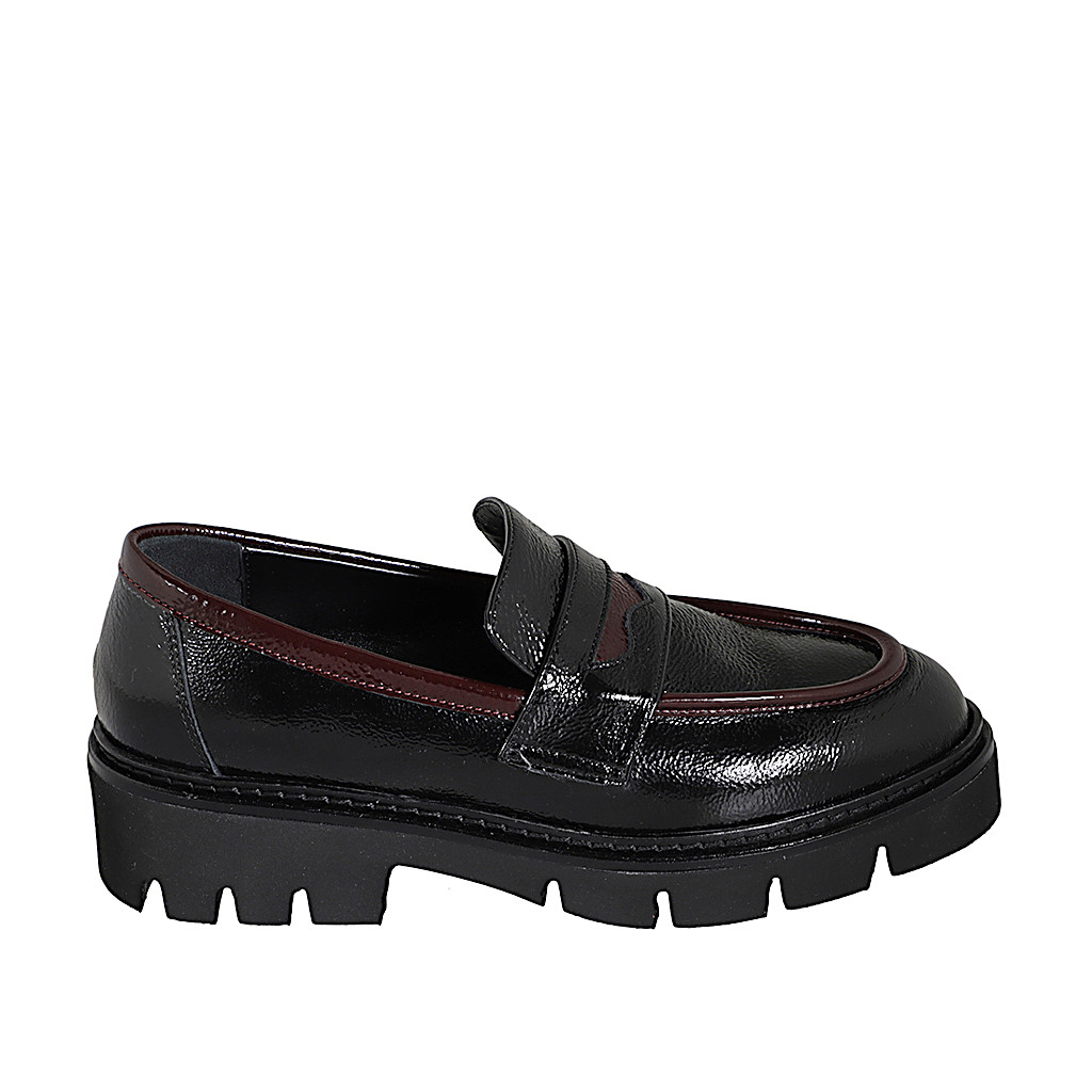 Mocassino a punta da donna con accessorio in pelle nera tacco 1