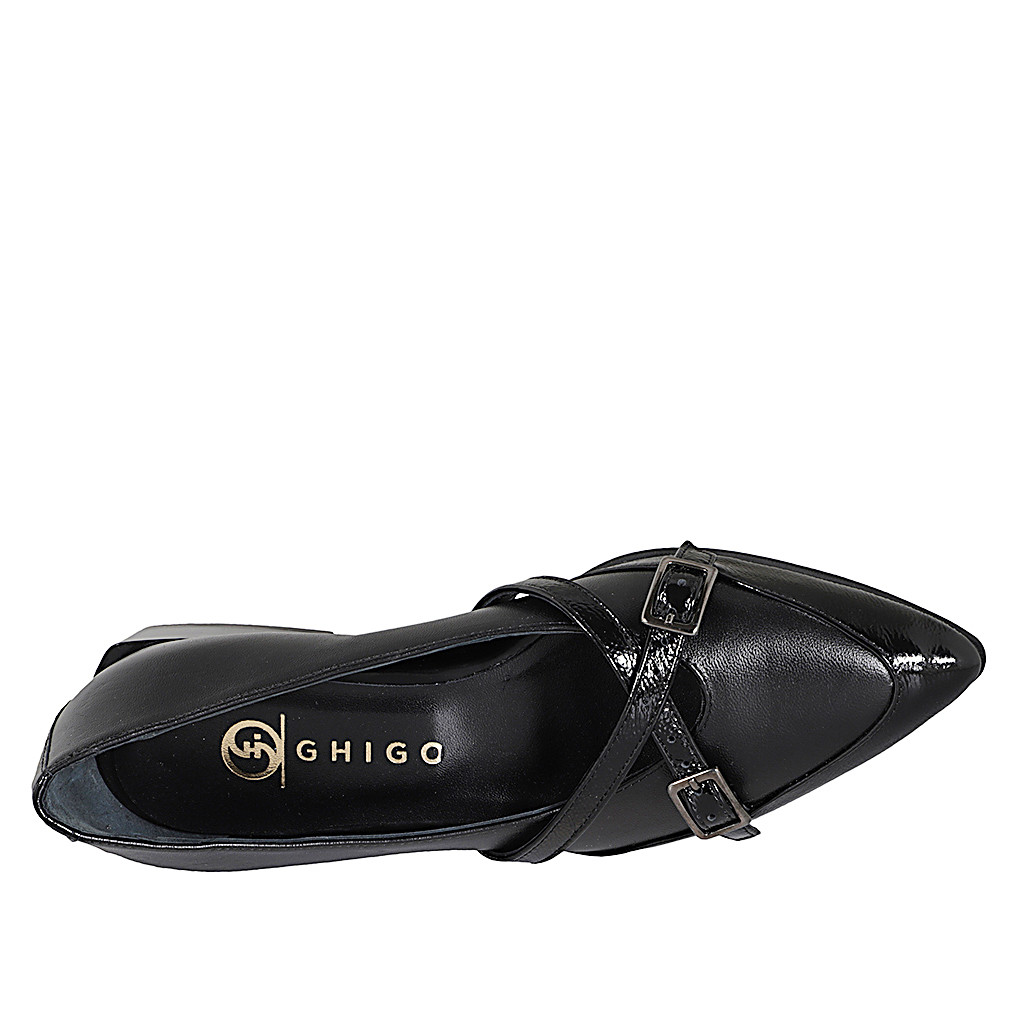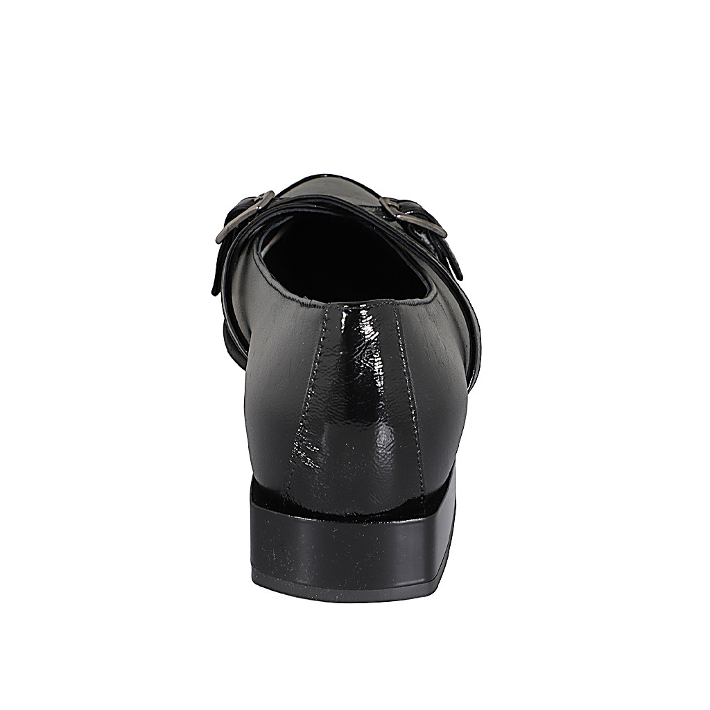 Mocassino da donna con accessorio e plantare estraibile in camoscio nero tacco 3