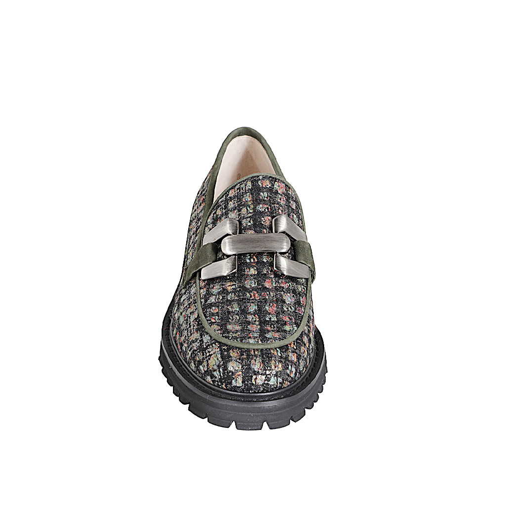 Sandalo da donna con listini intrecciati, 2 cinturini e plateau in pelle verde bosco zeppa 9
