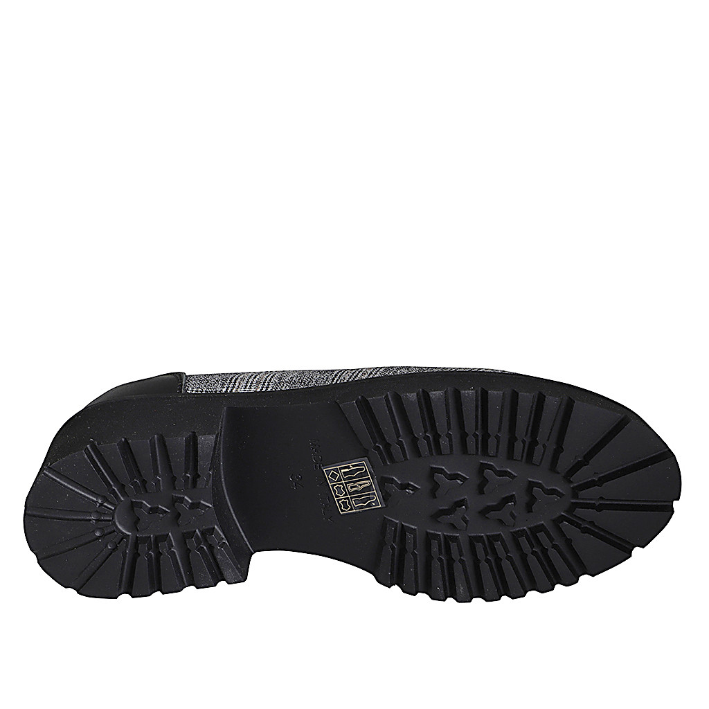 Mocassino da donna con accessorio in pelle nera e tessuto principe di Galles grigio tacco 4 - Misure disponibili: 35, 44