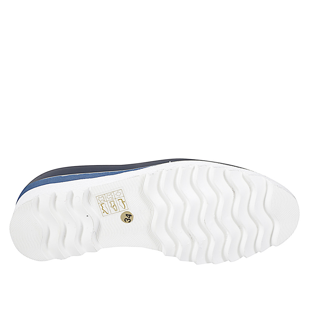 Mocassino con zeppa da donna con elastici e nappine in pelle blu e zeppa 4