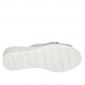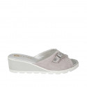 Sabot da donna con plantare in memory foam e fibbia in camoscio grigio e pelle stampata grigia zeppa 5