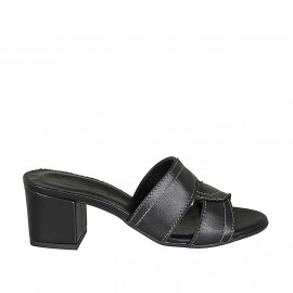 Sabot modello Mary Jane da donna chiuso in punta in pelle nera con cinturino tacco 7