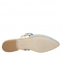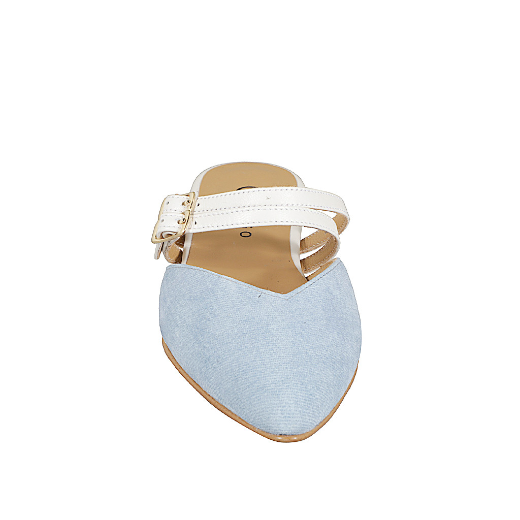 Sabot a punta sfilata chiusa in camoscio effetto denim e con doppio cinturino in pelle bianca e tacco 2
