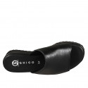 Scarpa stringata da donna con plantare estraibile in pelle color blu e tessuto raffia intrecciato multicolore con zeppa 4