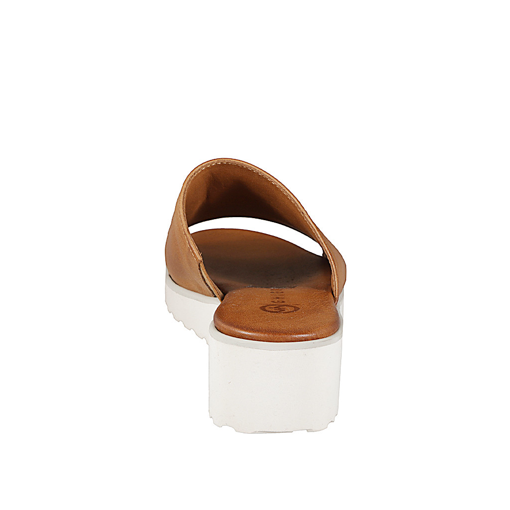 Sabot da donna in pelle cuoio e nodo in camoscio stampato platino zeppa sughero 9