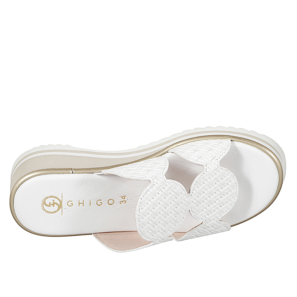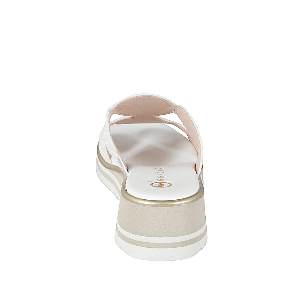 Sabot da donna con 2 fasce con motivo geometrico ed elastico in pelle intrecciata bianca con zeppa 5