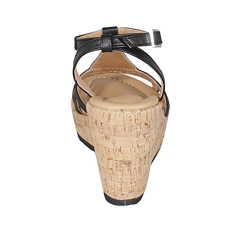 Sandalo da uomo con velcro in pelle e tessuto nero