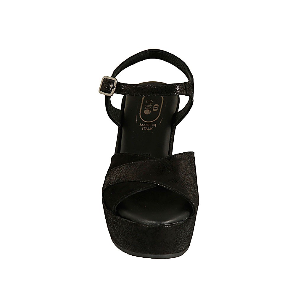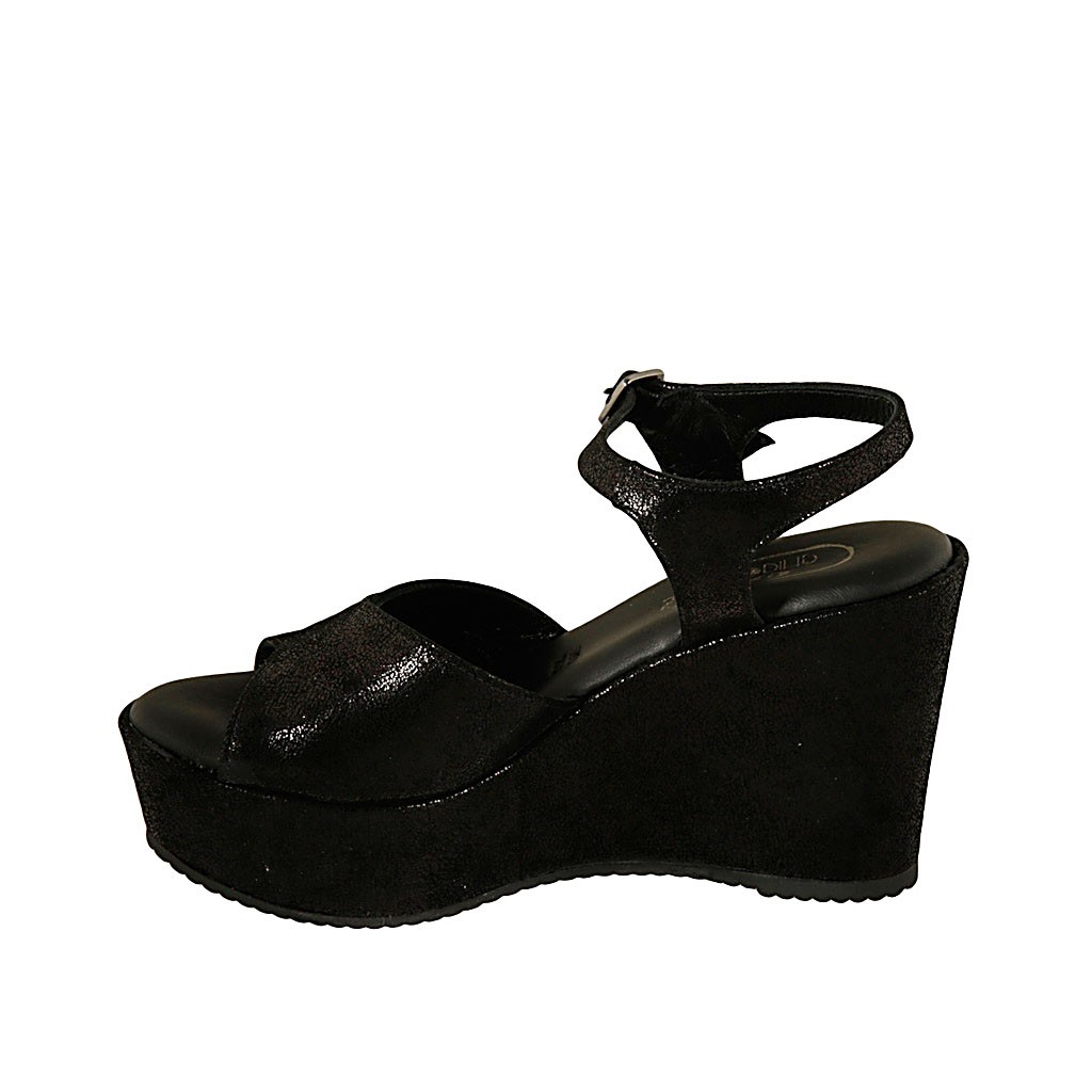 Scarpa aperta a punta da donna con cinturino Charleston in camoscio cuoio, taupe e grigio tacco 7