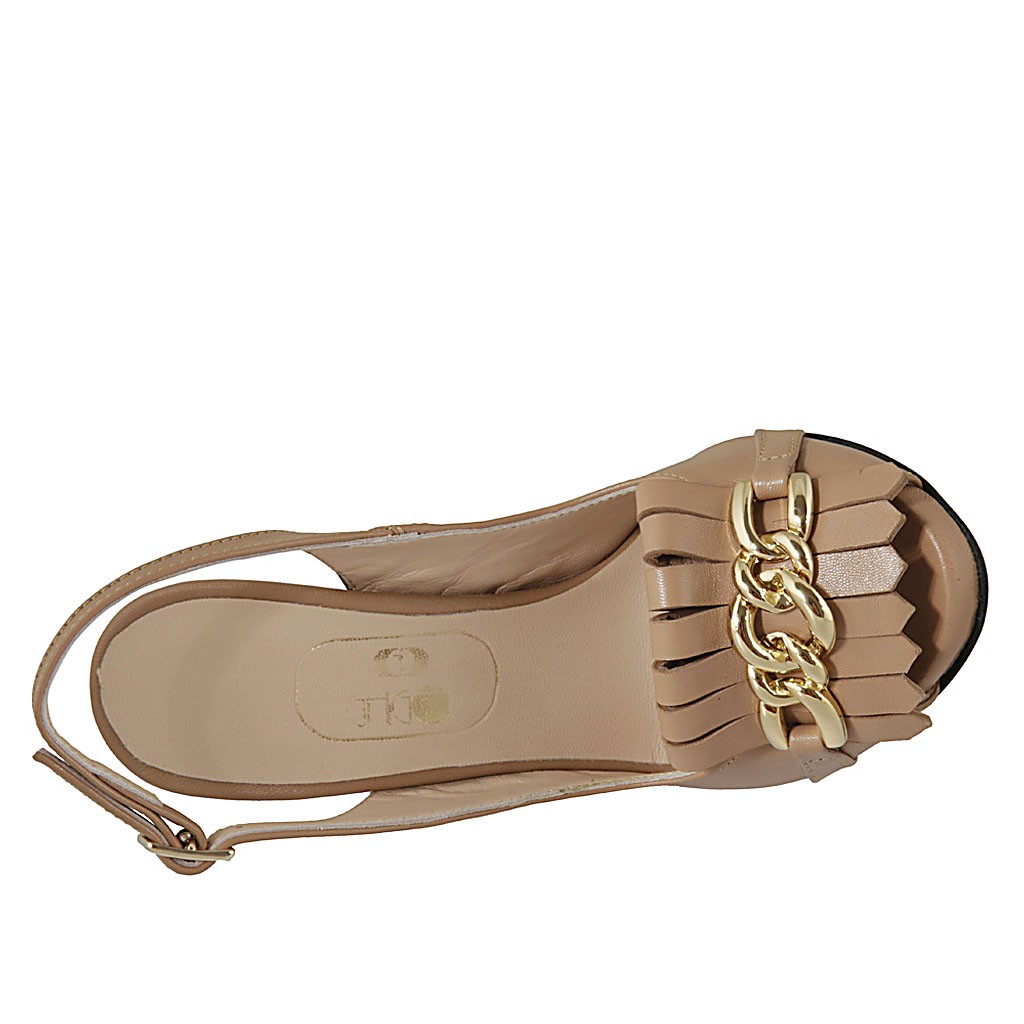 Sandalo da donna con plateau, catena e frange in pelle rosa beige tacco 11 - Misure disponibili: 42