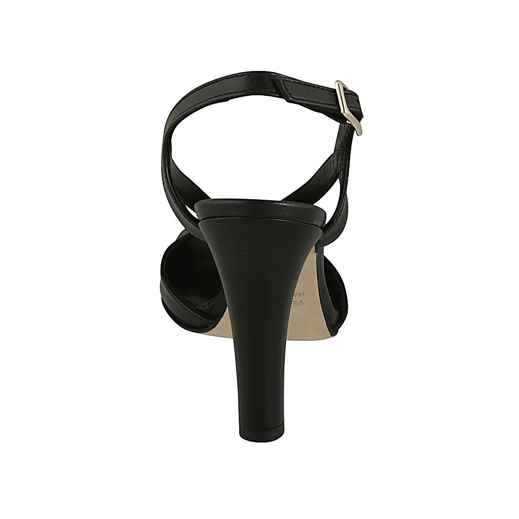 Sandalo da donna in pelle nera tacco 10 - Misure disponibili: 42
