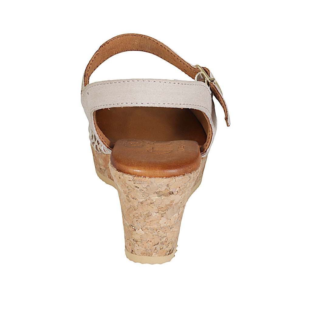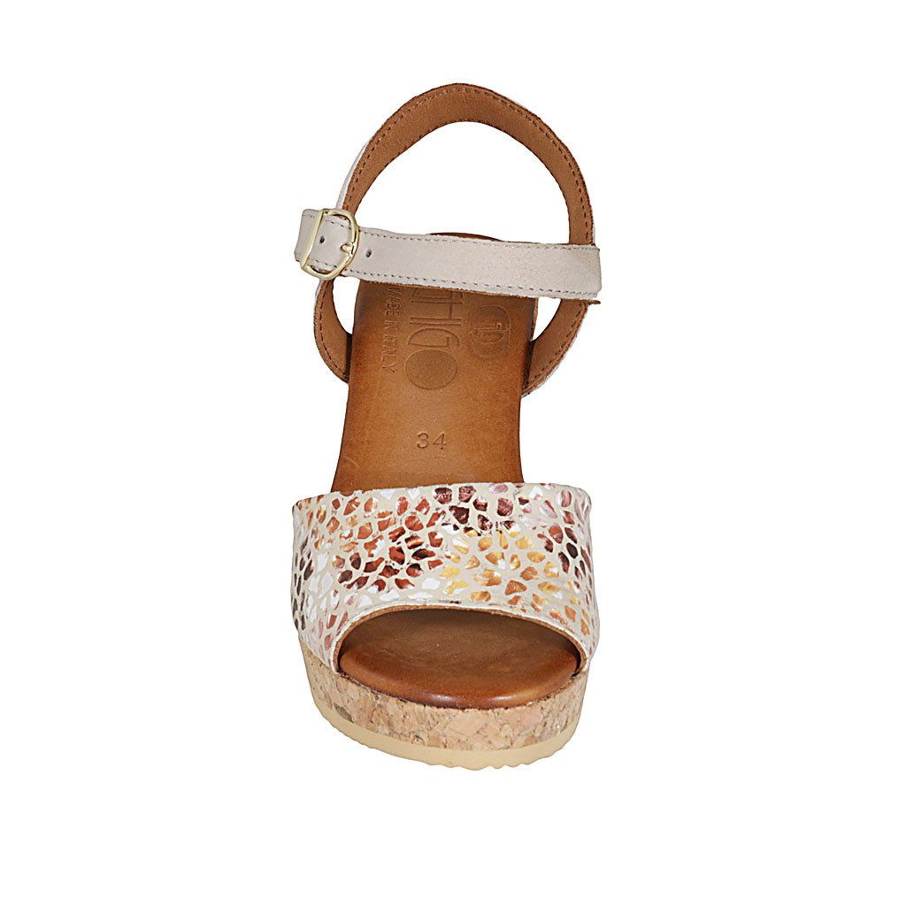 Sabot da donna con elastico in camoscio nero e stampato laminato argento zeppa 4