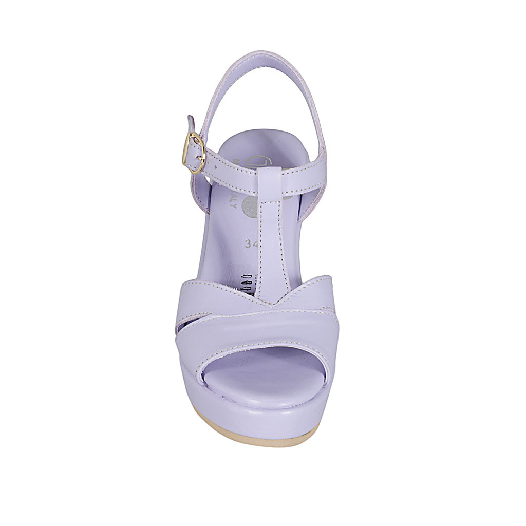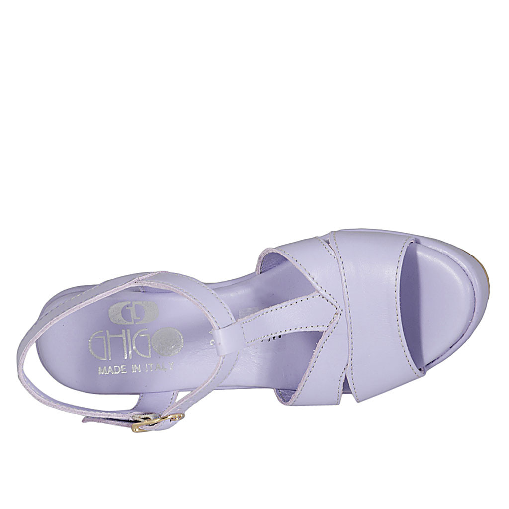 Sandalo da donna con cinturino in pelle lilla zeppa 9