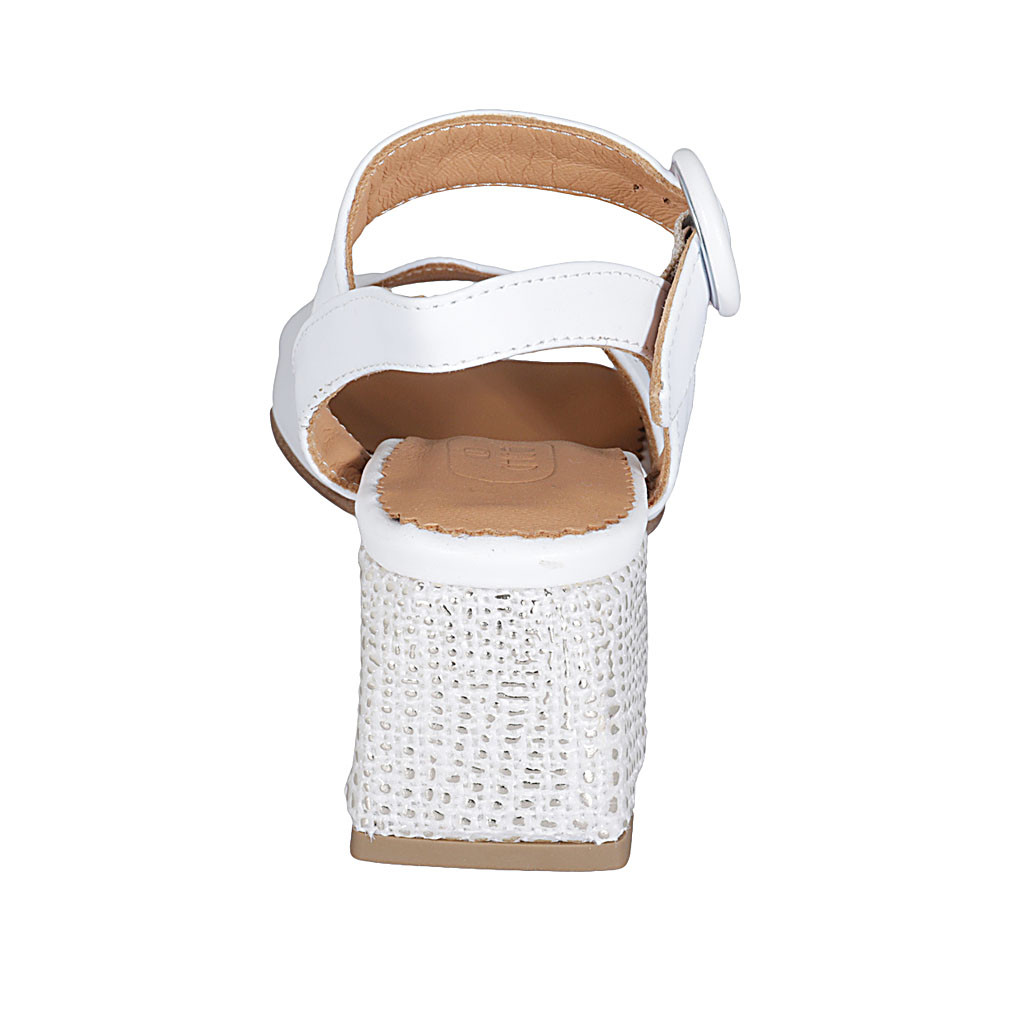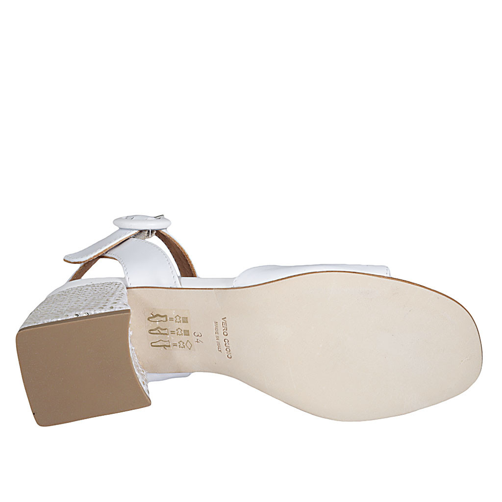 Sandalo infradito da donna con cinturino e strass in pelle laminata platino tacco 2
